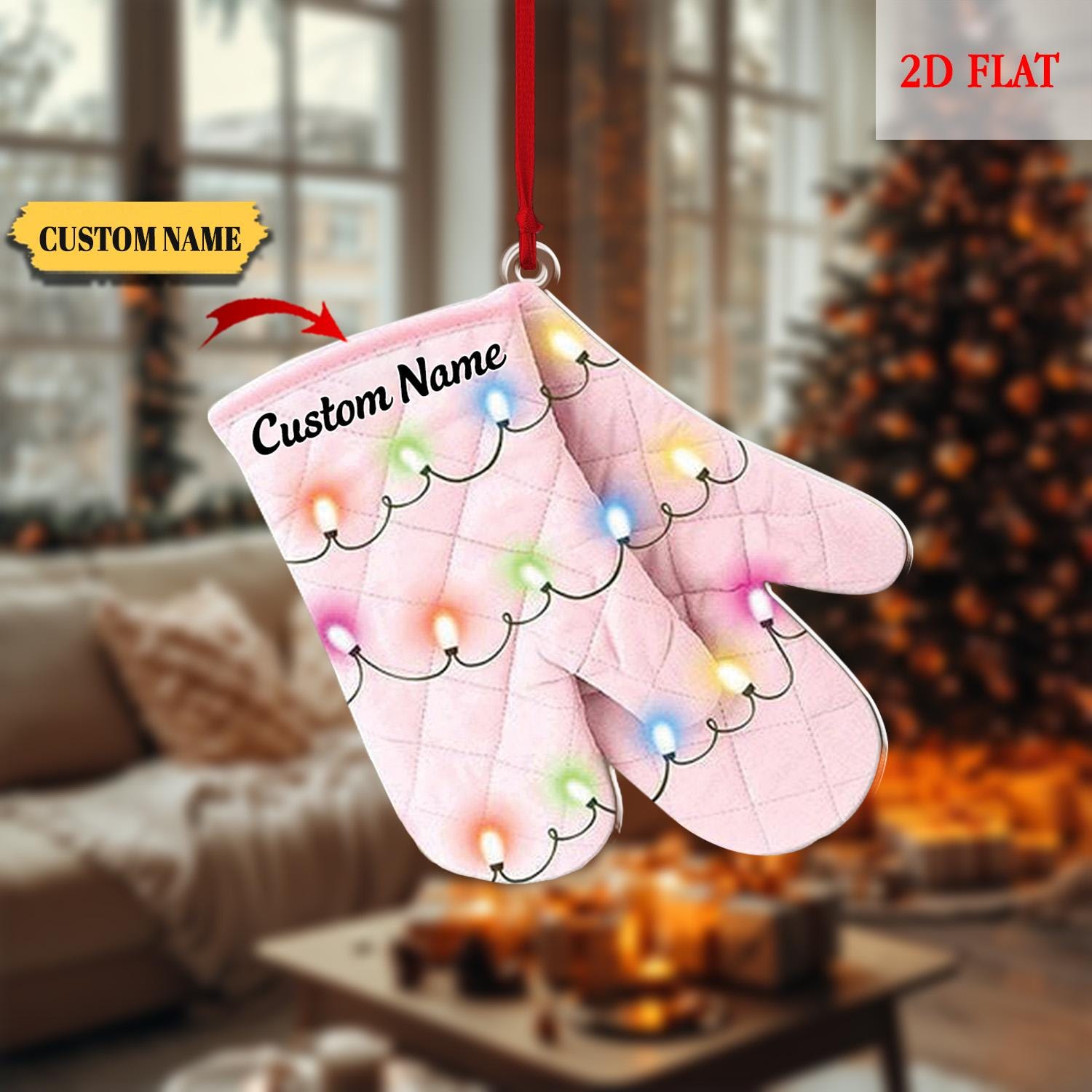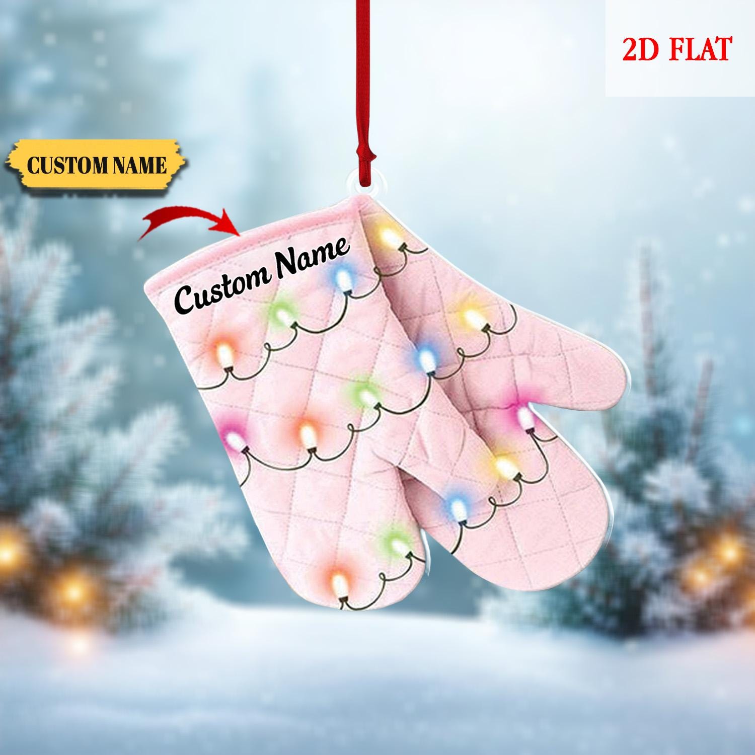Personalized Chef Gloves 2D Flat Ornament, Custom Chef Gloves Ornament Love Kitchen, Christmas Gift For Master Chef Ornament, Bakers gitf