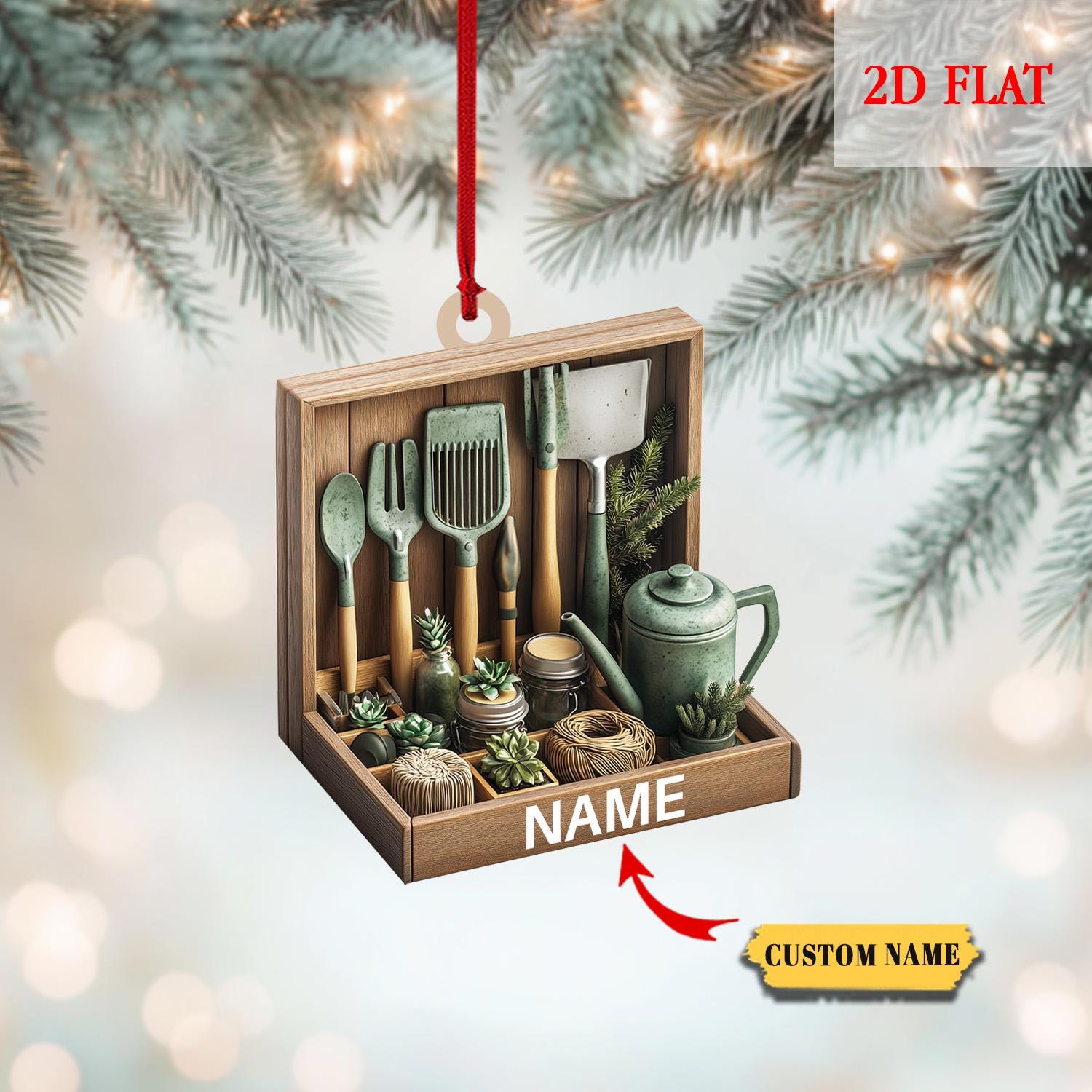 Personalized Chef Tools Christmas 2D Flat Ornament, Gift For wife, Chef Knife Set Kitchen Decor Christmas Gift, Kitchen Tools ornament
