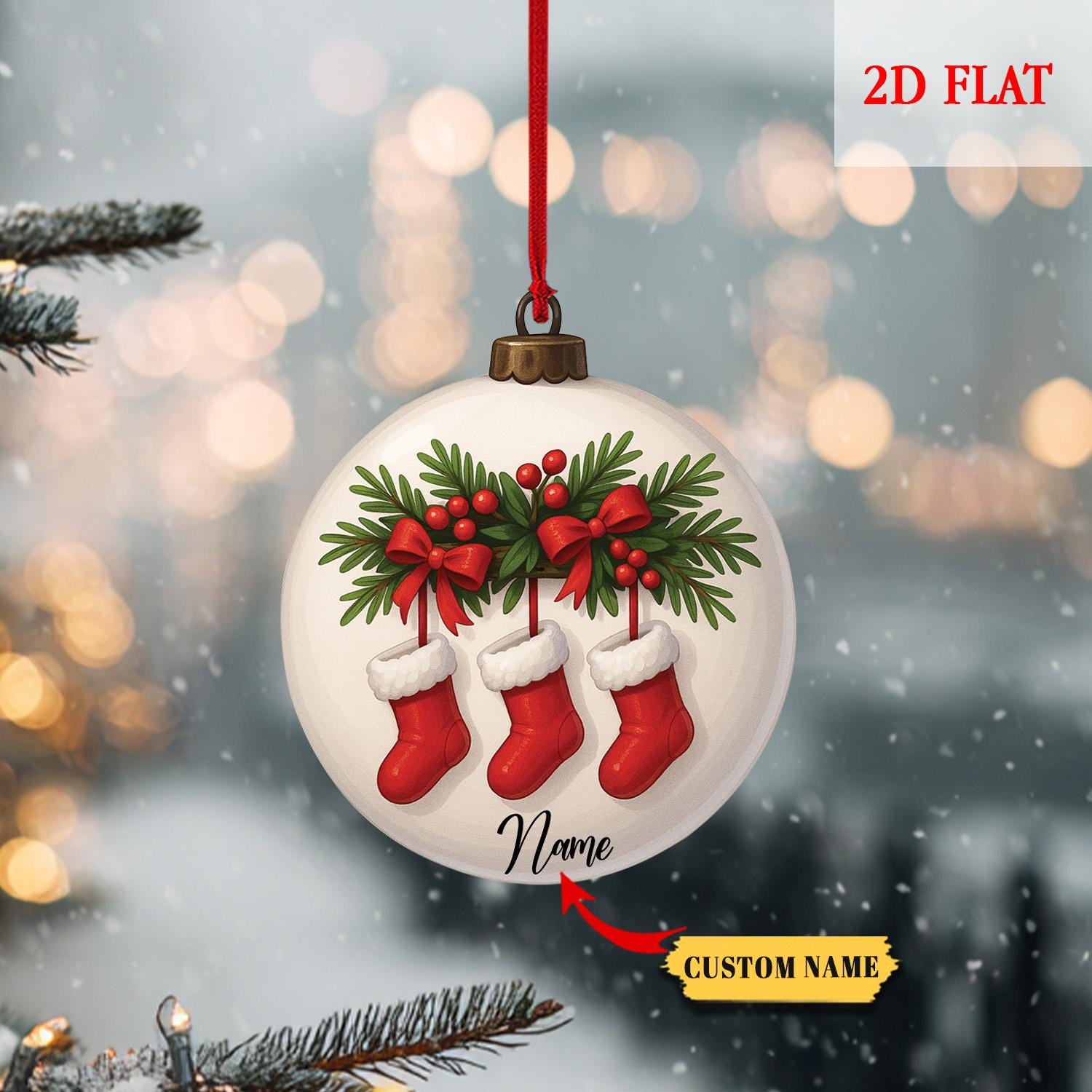 Personalized Christmas Stocking Ornament, Xmas Stockings Bauble Ornament, Christmas Stocking Gift, Stockings on Fireplace, Christmas Gift