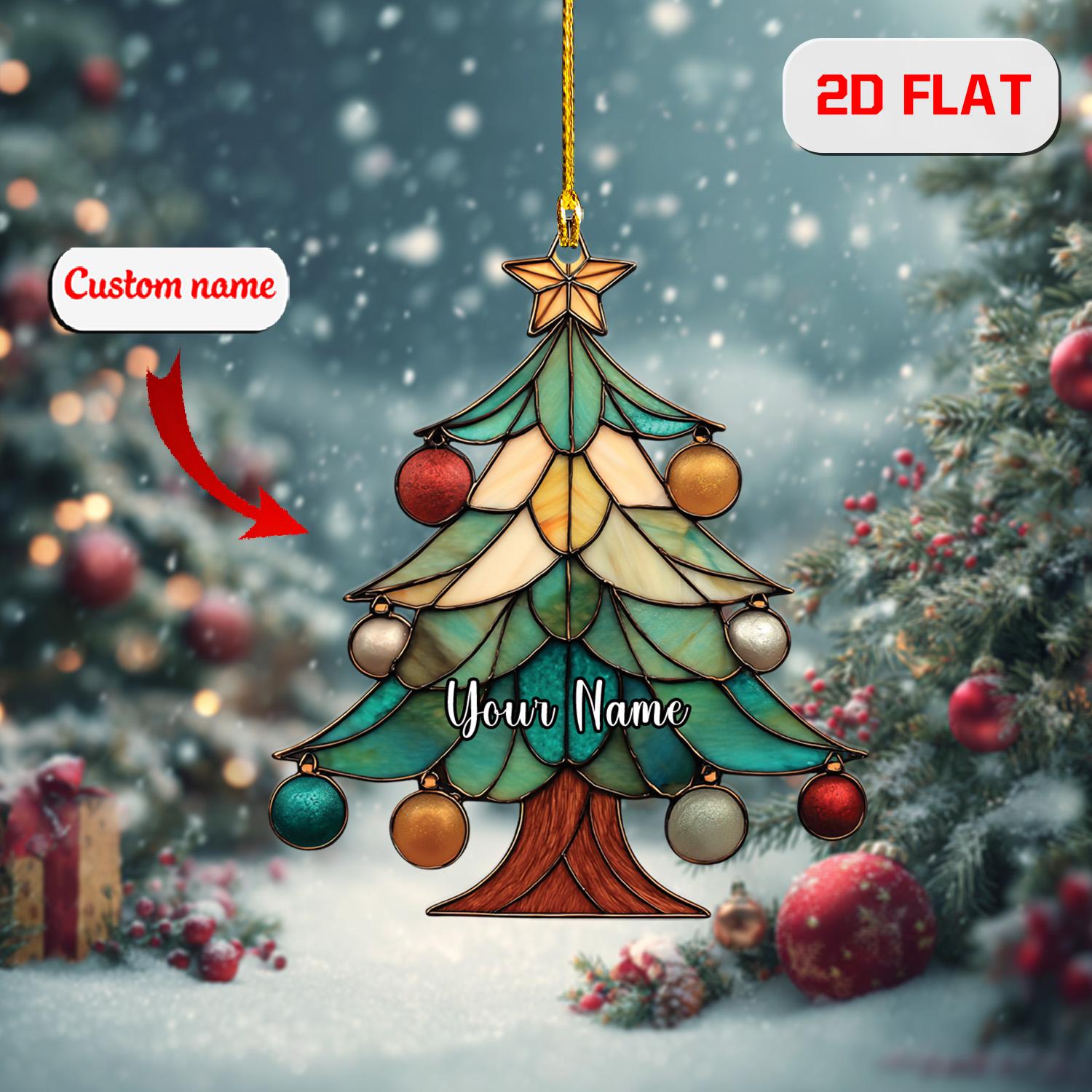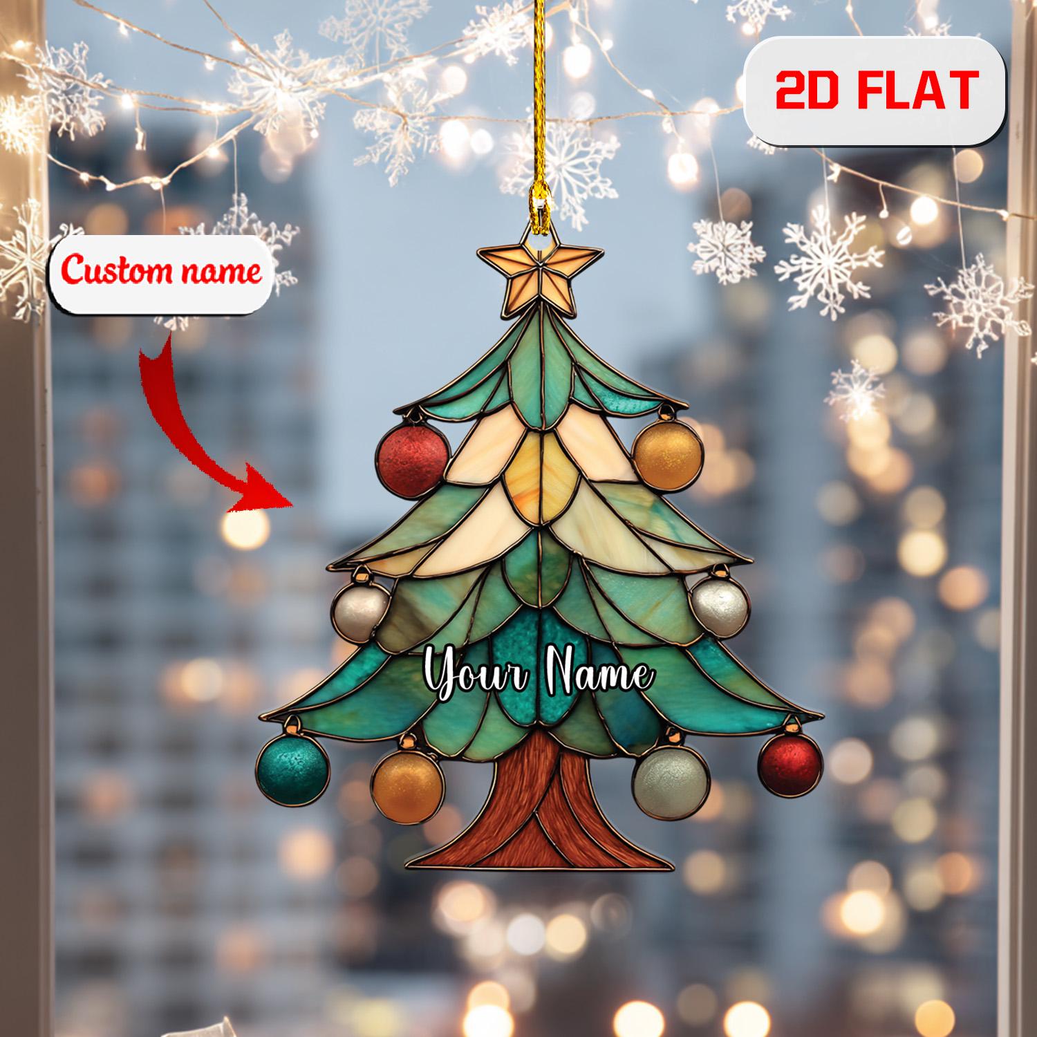 Personalized Christmas Tree Ornament, Custom Name Holiday Ornament, Festive Xmas Tree Decor, Stained Glass Style Ornament, Gift Idea