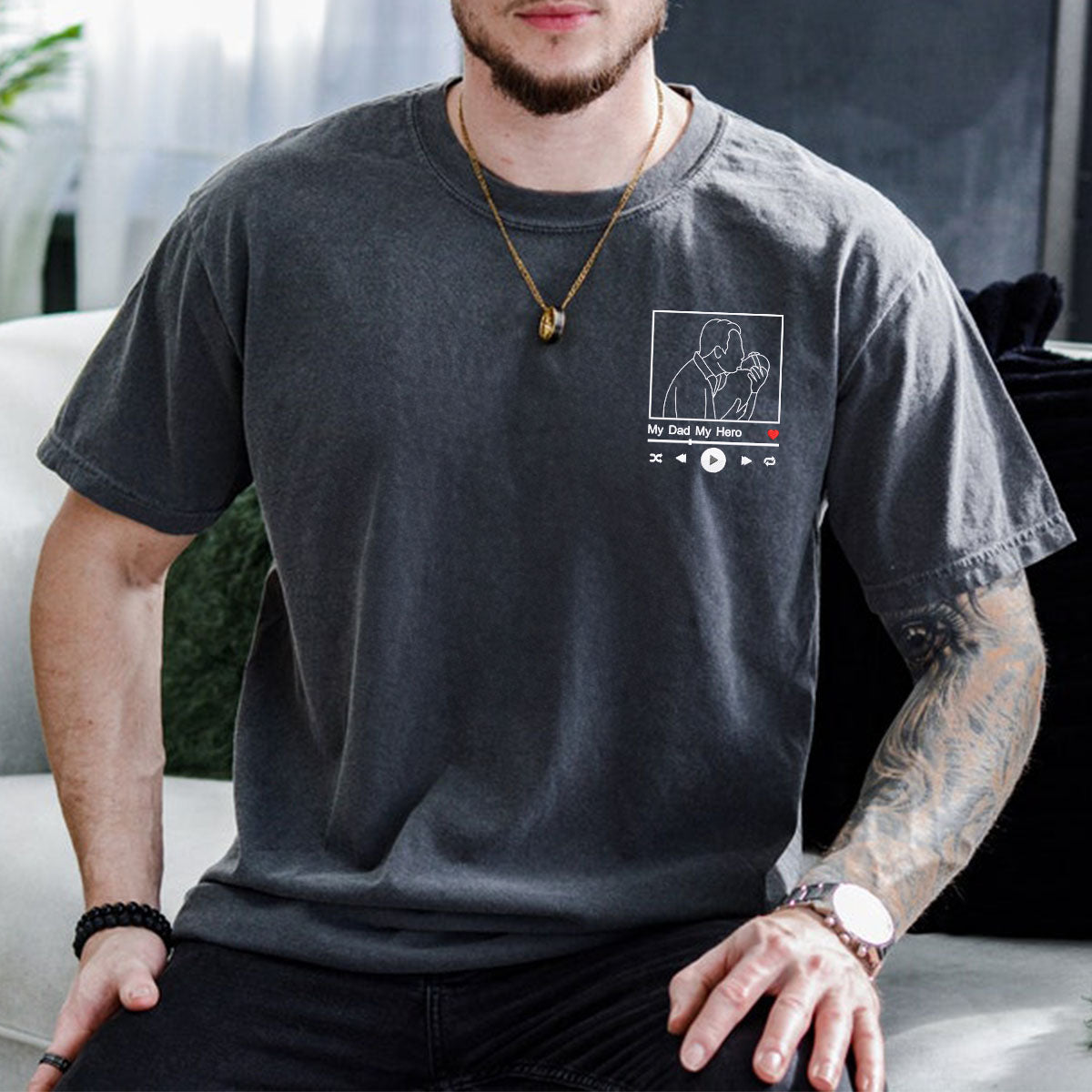 Personalized Dad T-Shirt, Father's Day Gift with Embroidered Photo Portrait