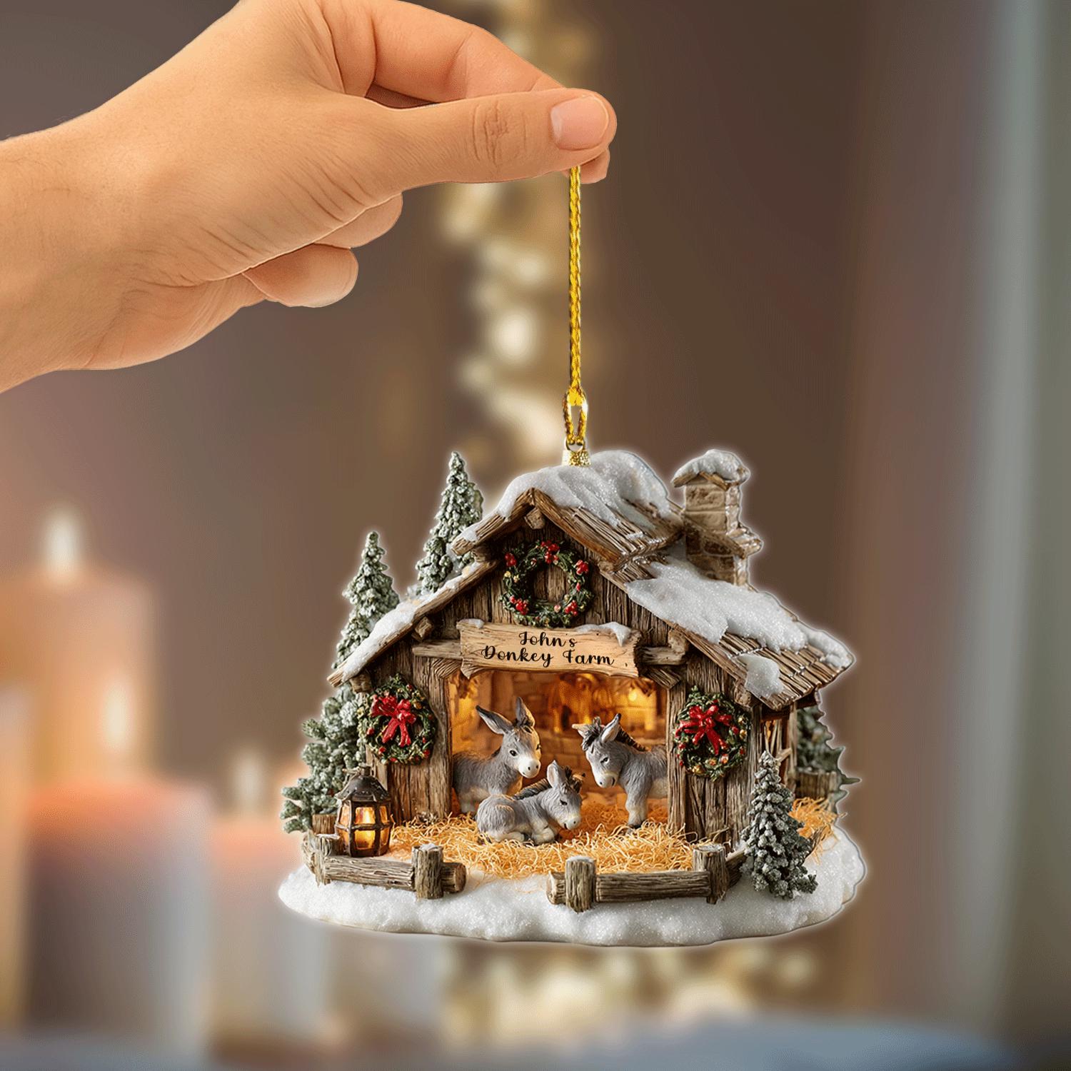 Personalized Donkey Farm Christmas Ornament | Rustic Barn Holiday Decor | Country Stable Gift for Donkey Lovers, 2D Flat ornament