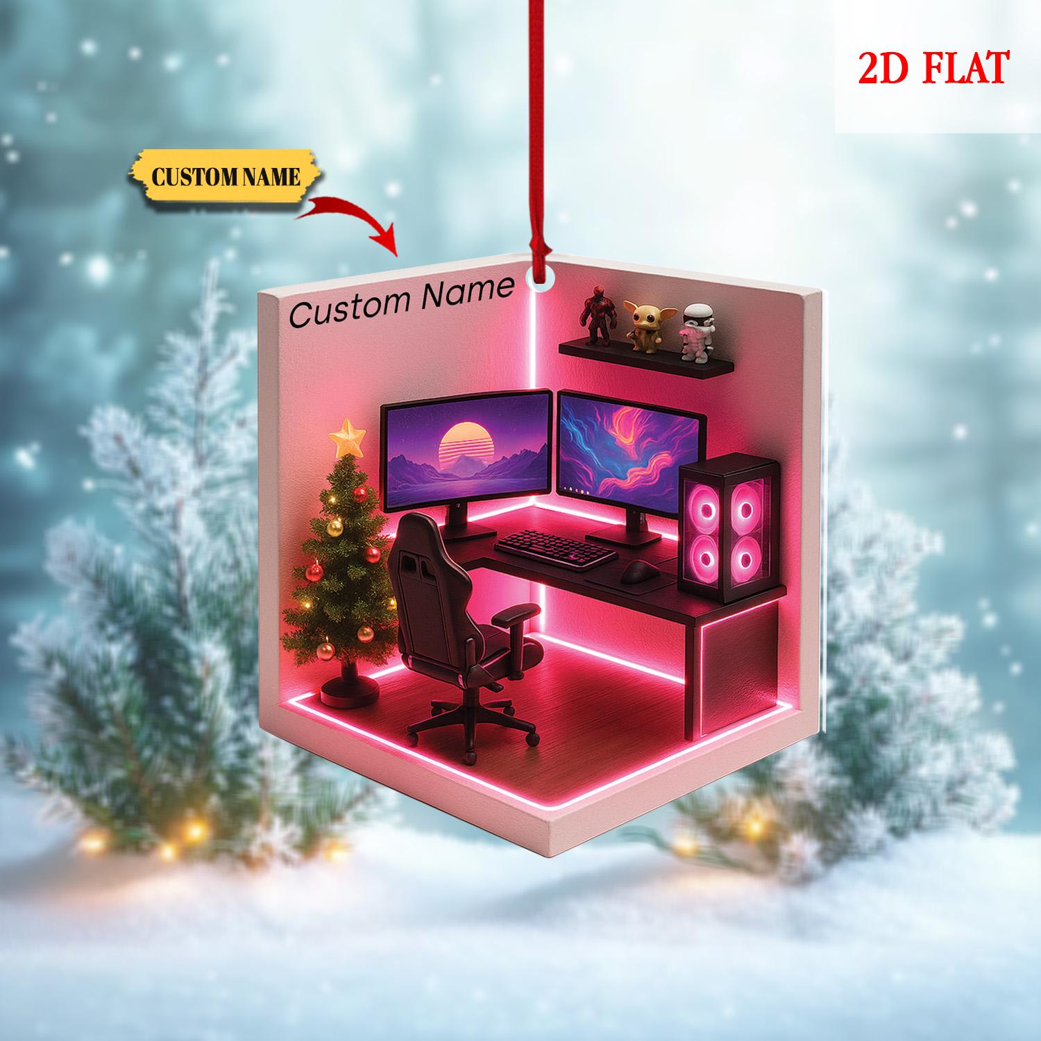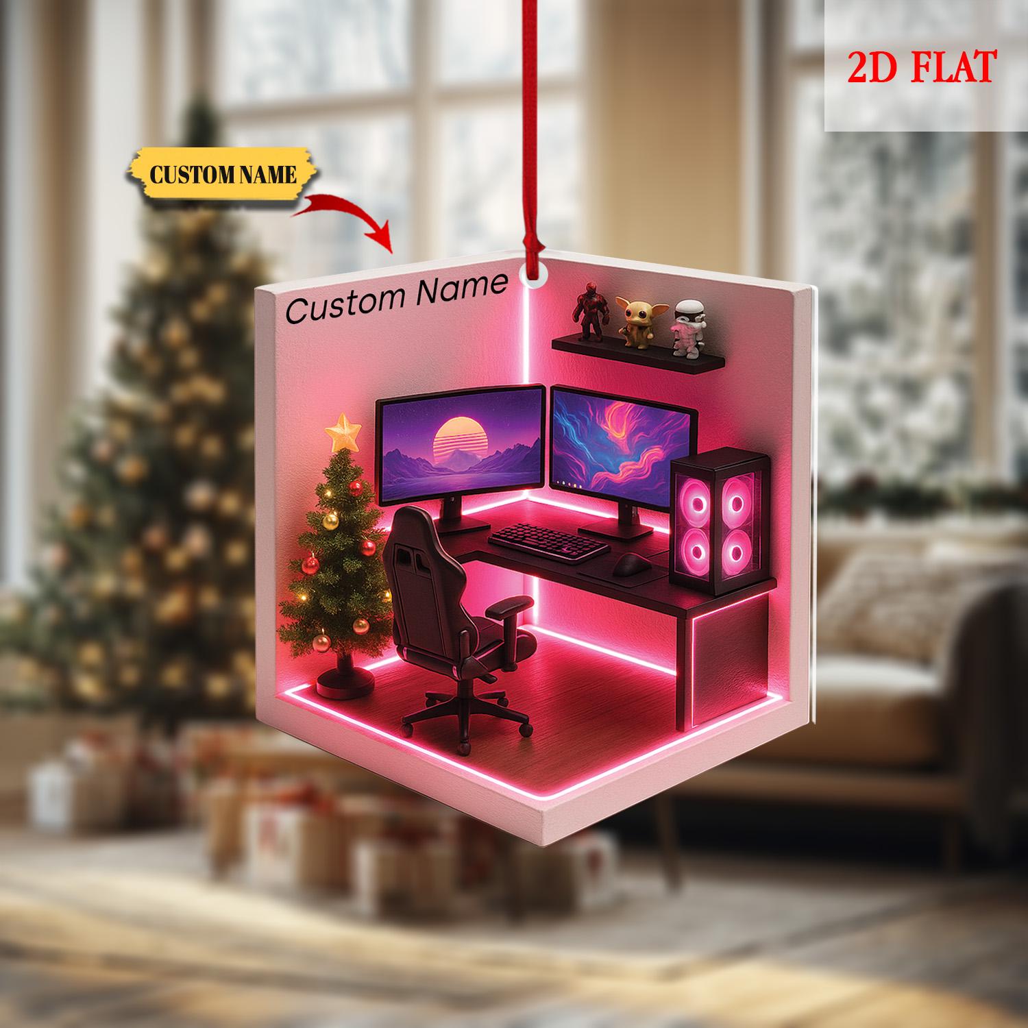 Personalized Dreamy Gaming Room 2D Flat Acrylic Ornament, Gaming Ornament, Video Game Ornament, Gamer Gift, Gamming Room Ornament