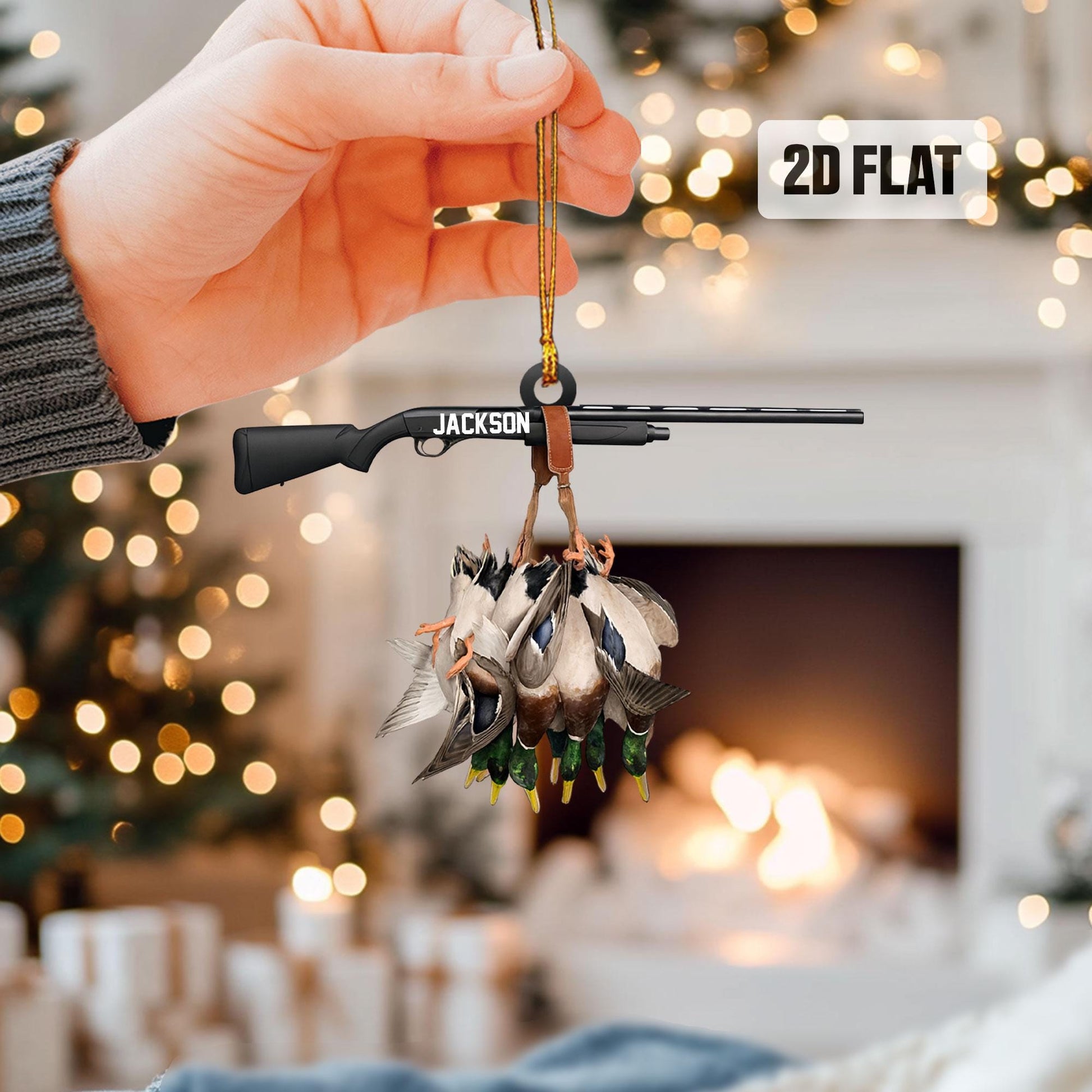 Personalized Duck Hunting Flat Ornament, Custom Hunting Rearview Mirror Car Accessories, Hunting Christmas Ornament, Gift for Dad, Husband