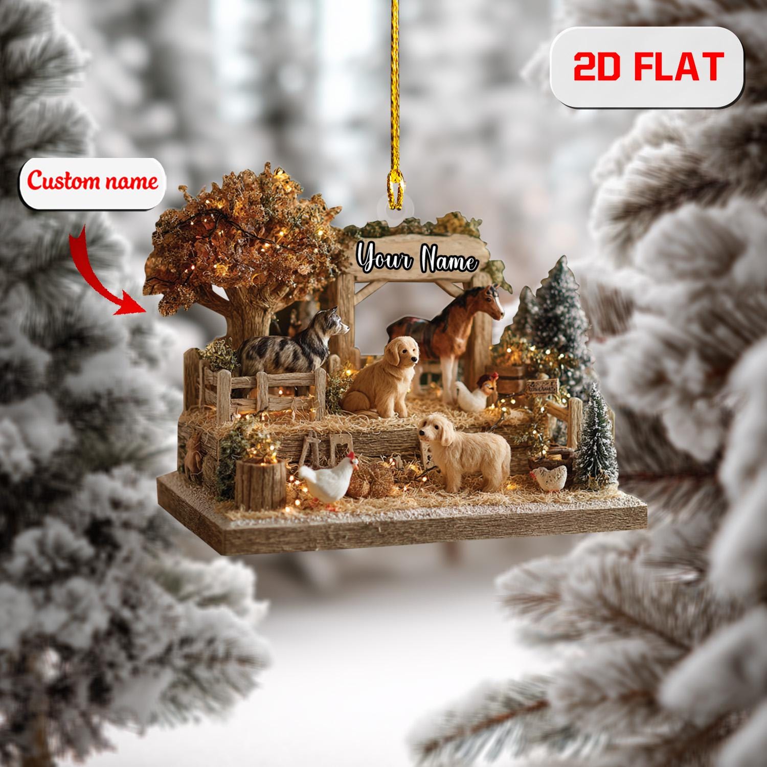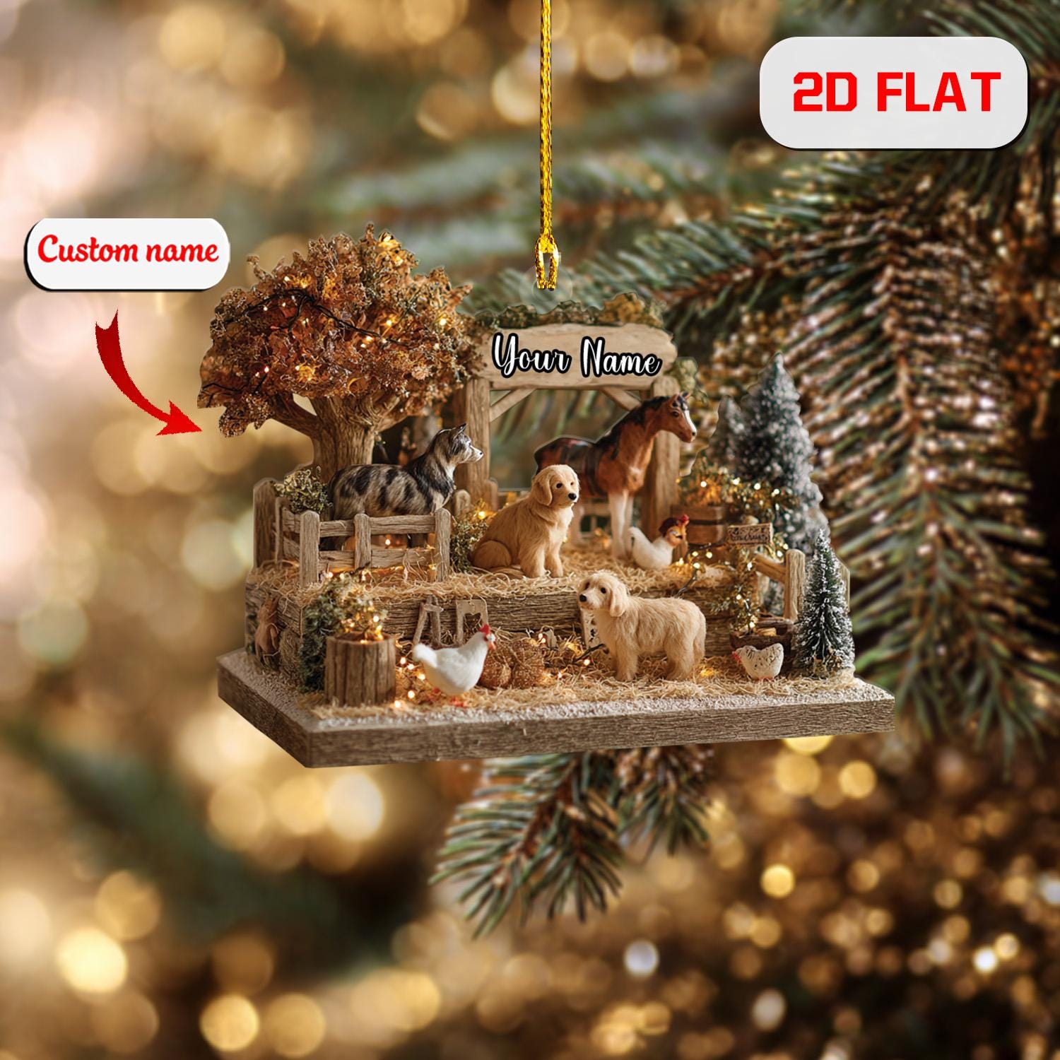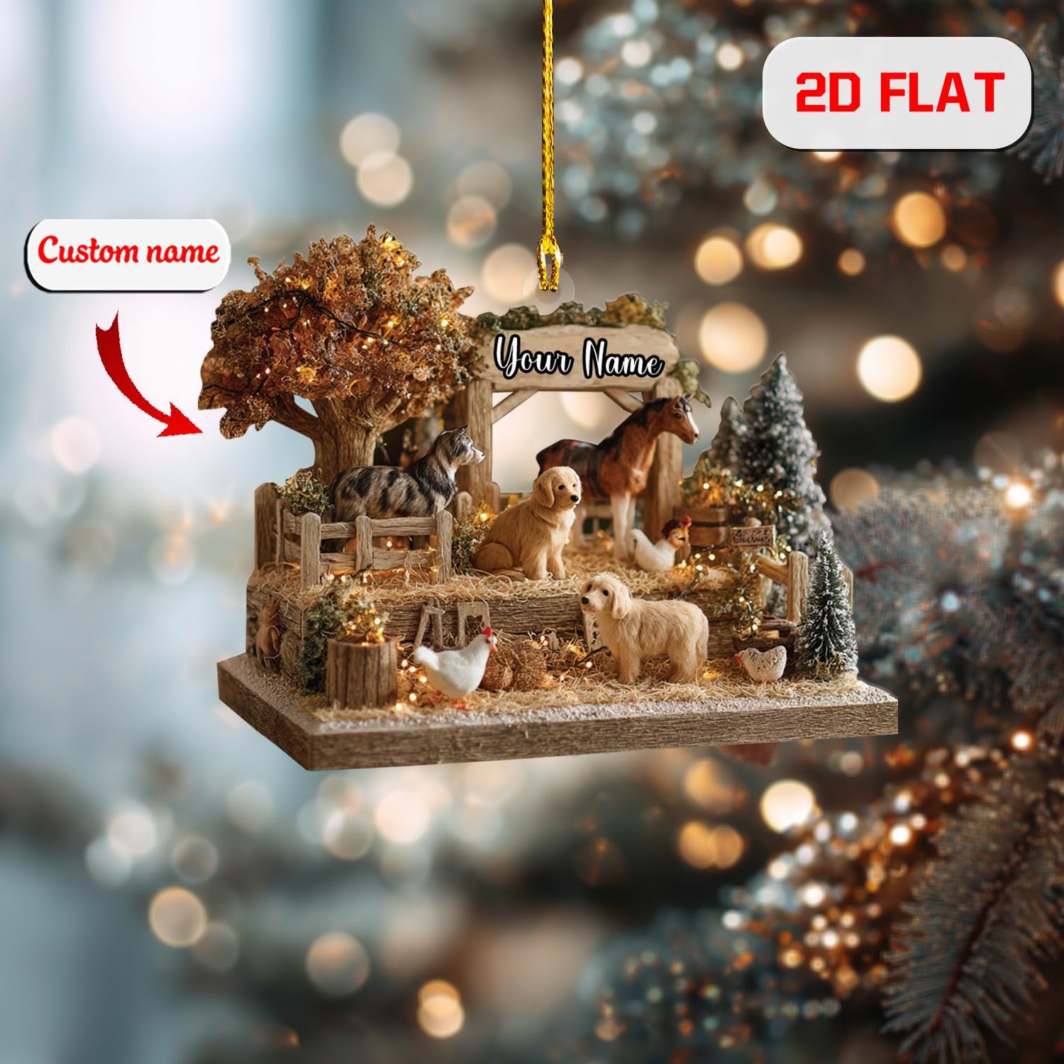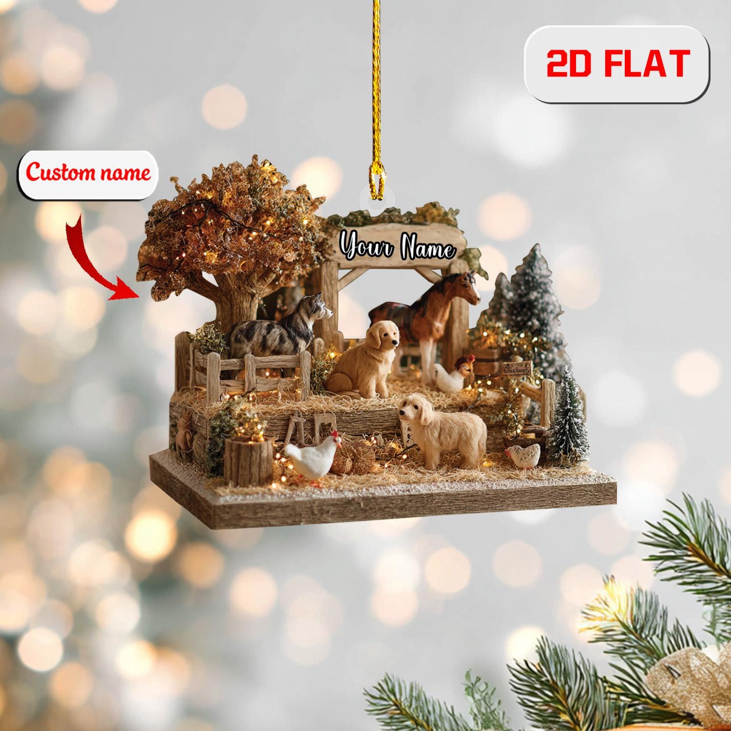 Personalized Farm Animal Ornament, Custom Name Christmas Ornament with Dog Horse Chicken, Rustic Barn Holiday Decor, Country Gift Idea