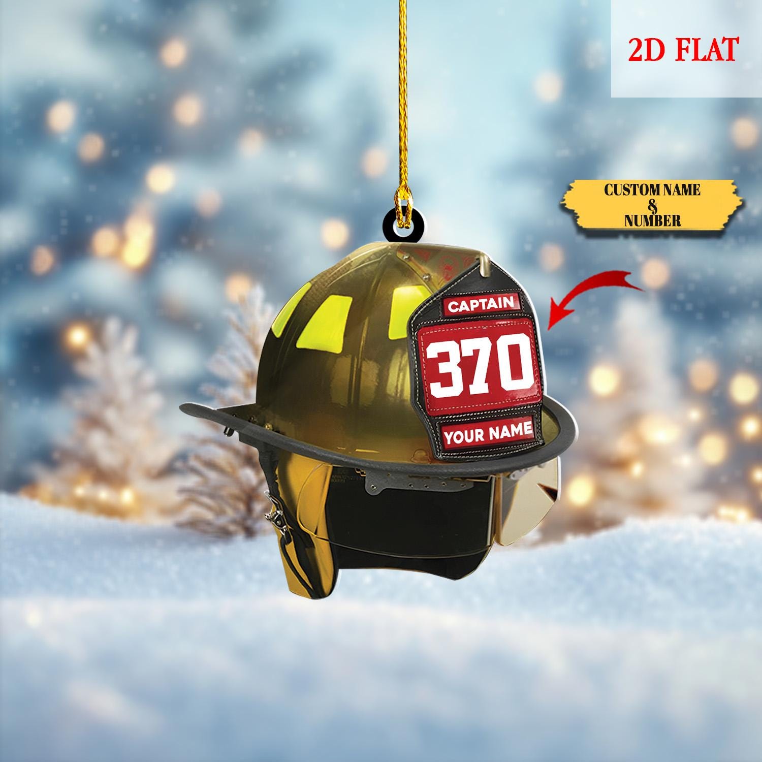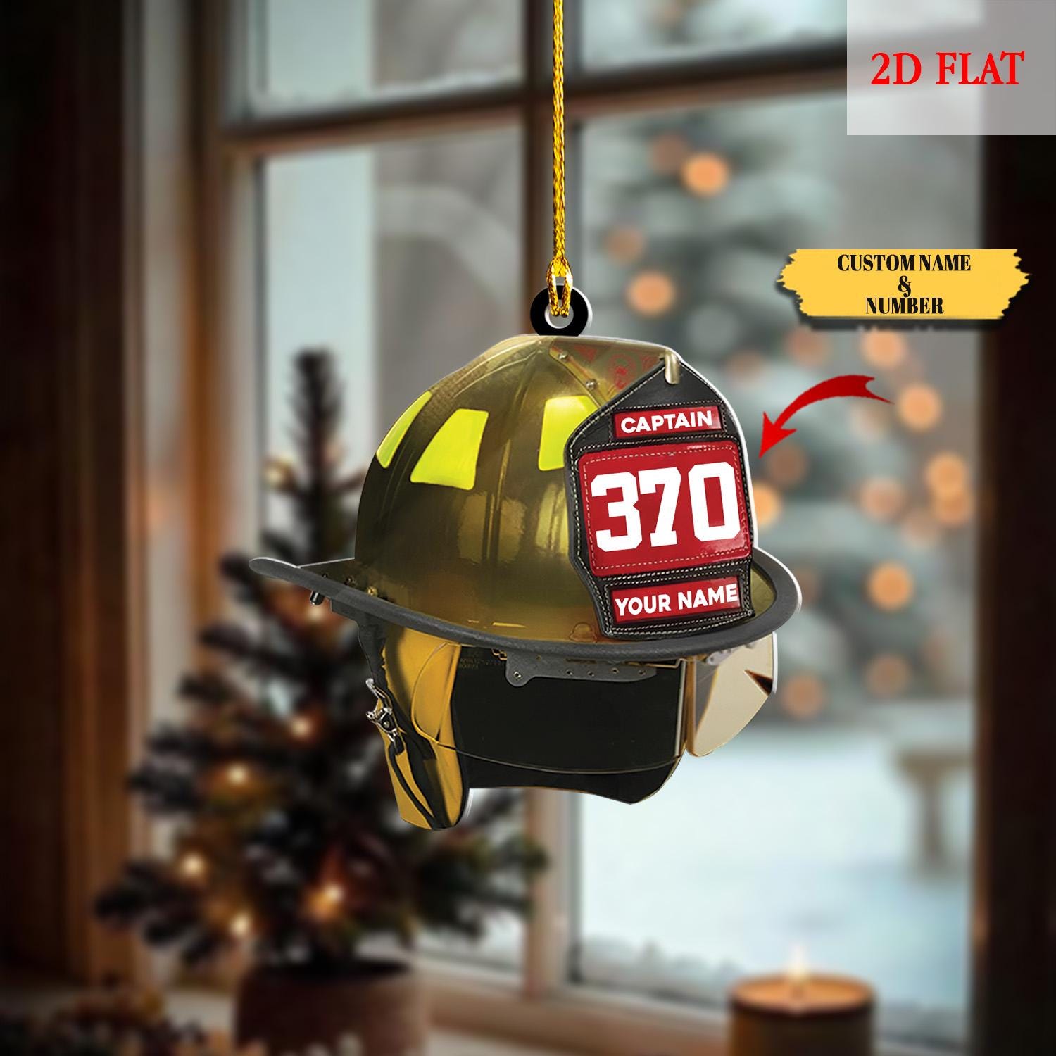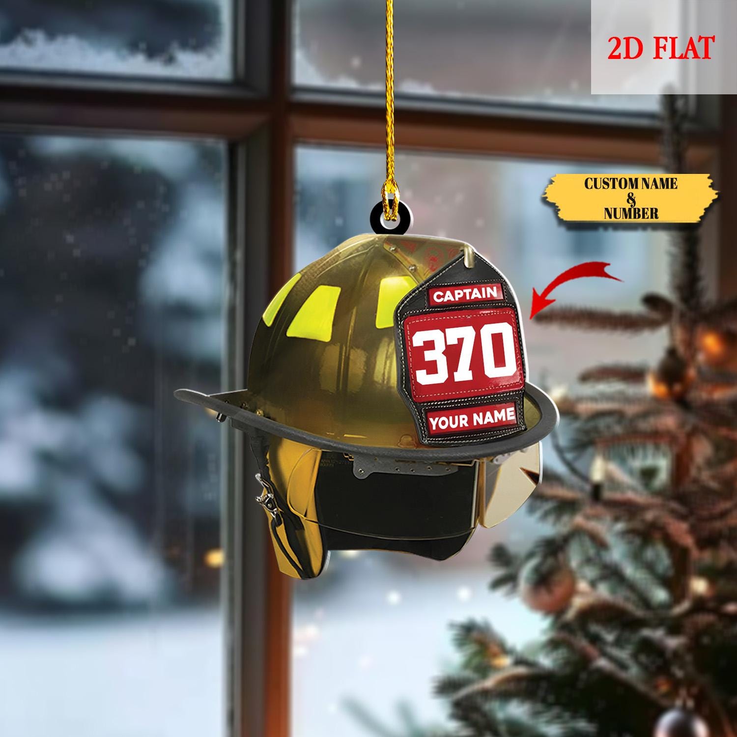 Personalized Firefighter Helmet Acrylic 2D Flat Ornament, Gift For Him Dad, Fire Fighter, Christmas Gift, Firefighter Helmet Ornament
