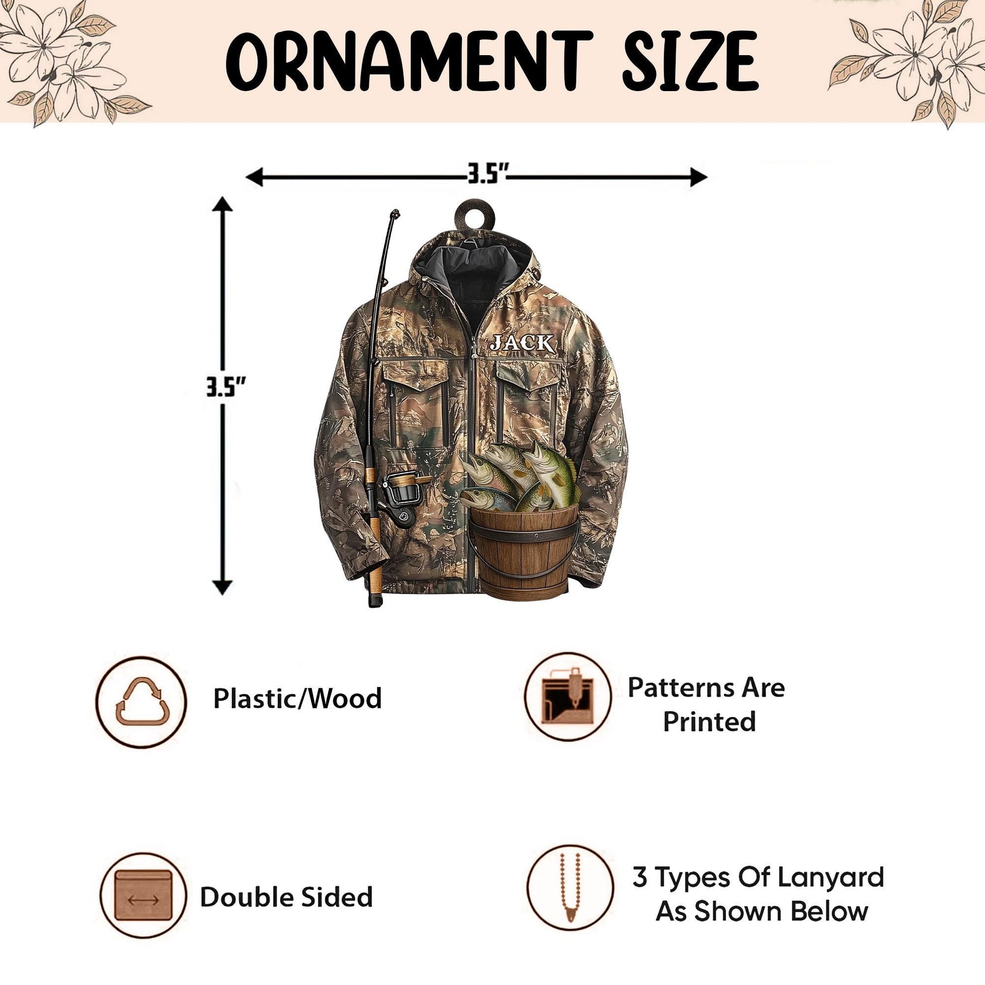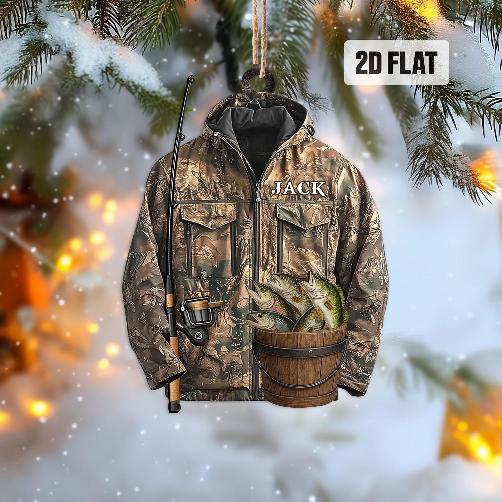 Personalized Fishing 2D Flat Ornament, Custom Bass Fish Christmas Tree Ornament, Fishing Vest Christmas, Gift for, Dad, Husband, Fisherman