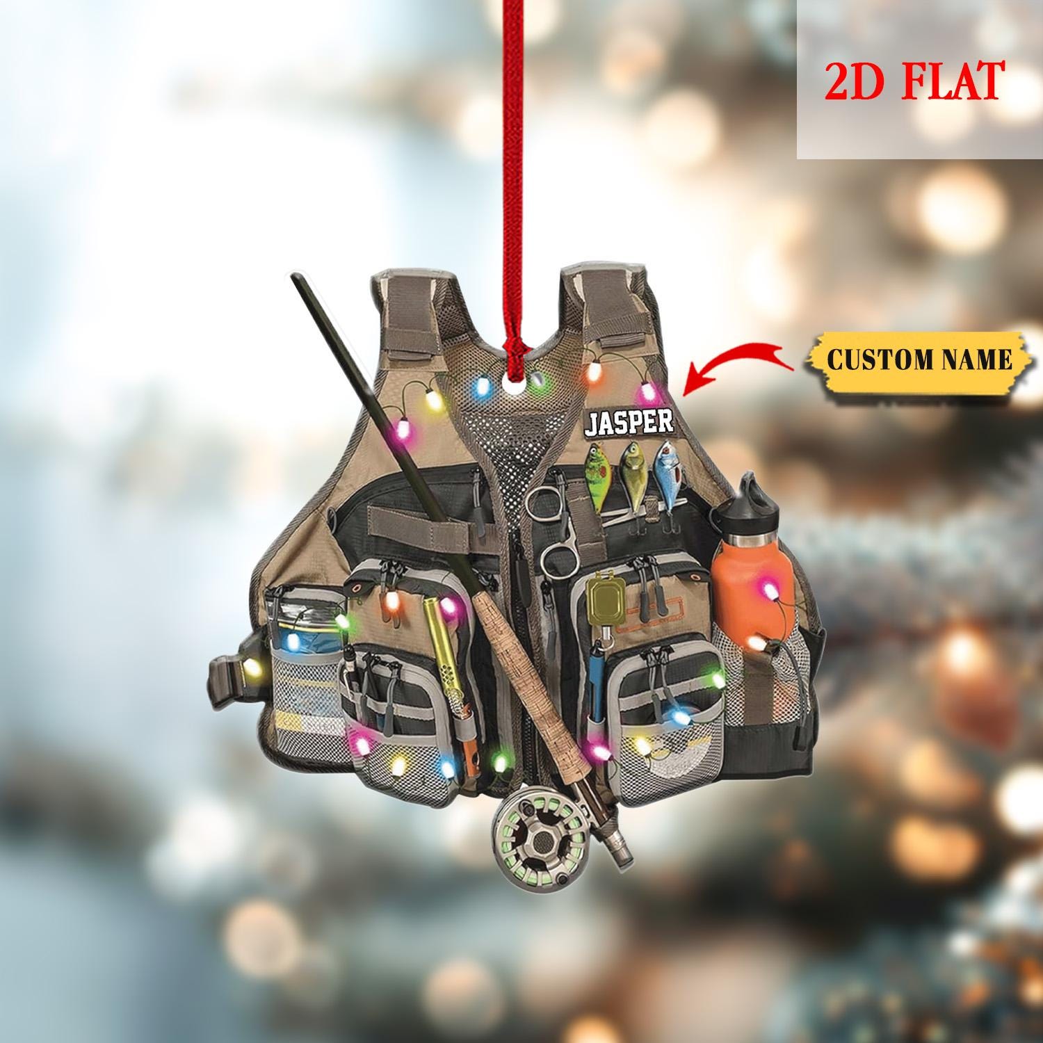 Personalized Fishing Gear Ornament, Gift for Fishing Lovers, Fishing Ornament for Dad, Fisherman Ornament, Bass Fishing Christmas Ornament