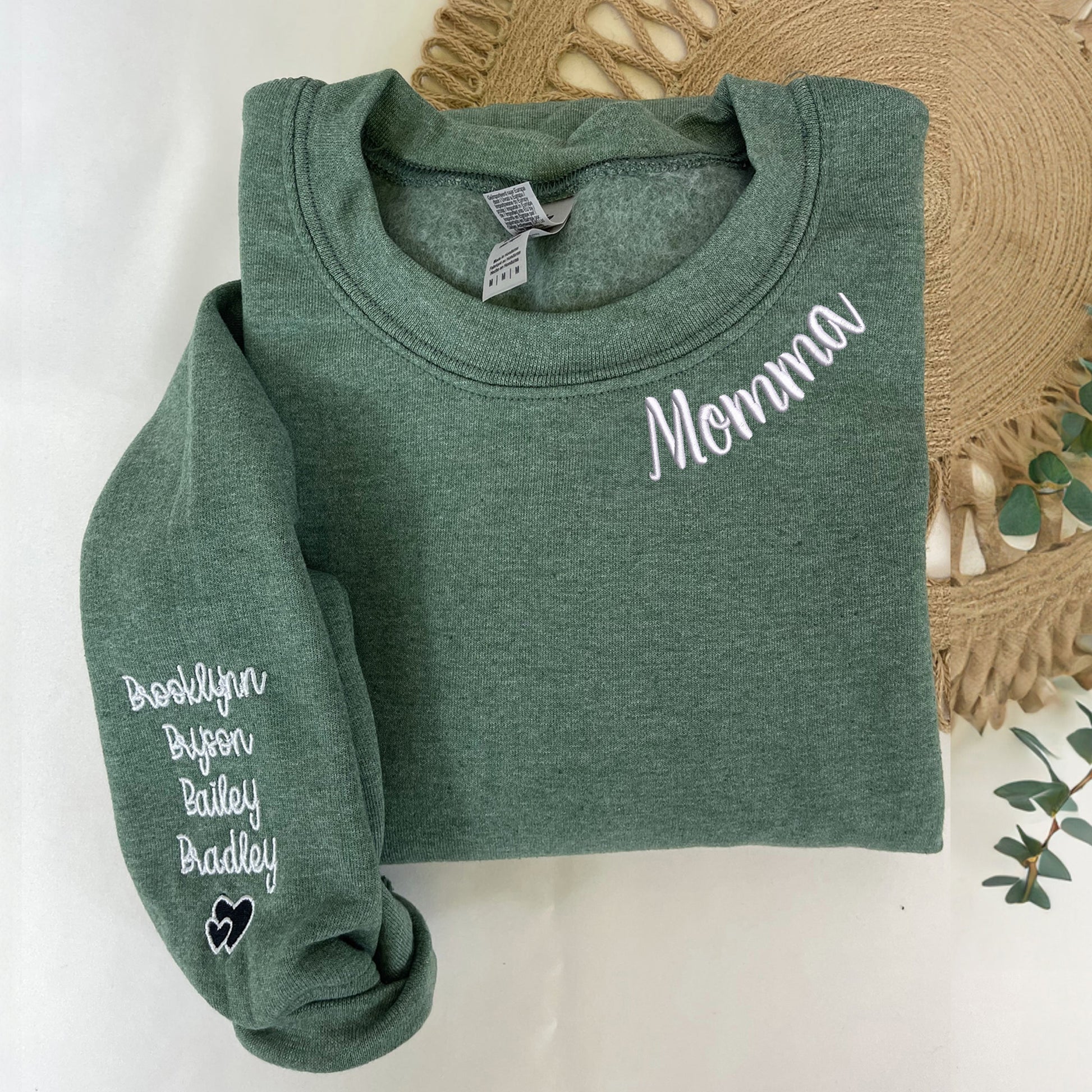 Personalized Gift for Momma with Embroidered Sweatshirt or Hoodie, Kids Names on Sleeve