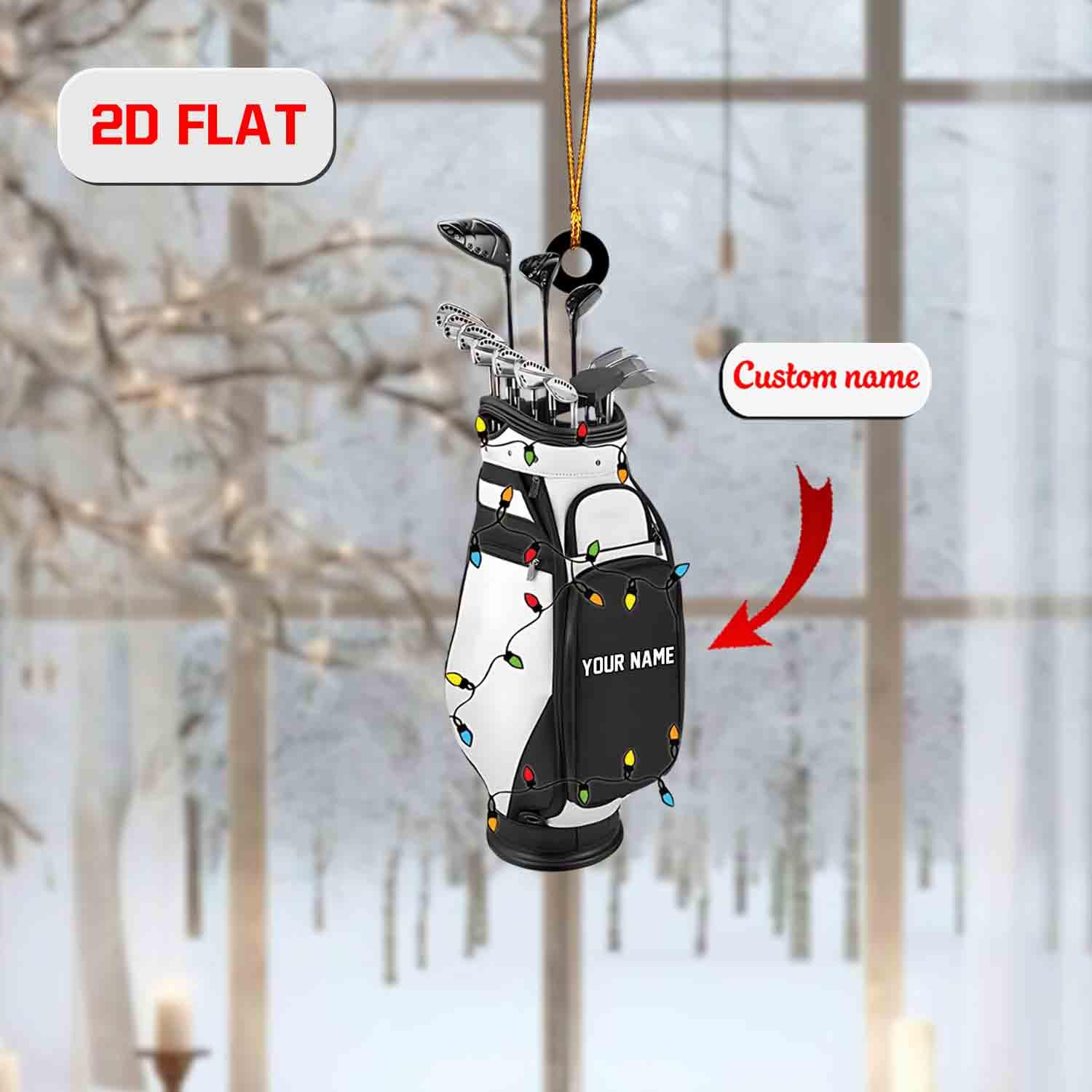 Personalized Golf Bag Ornament – Custom Name Acrylic Christmas Decoration, Unique Holiday Gift for Golf Lovers & Players (2D Flat)