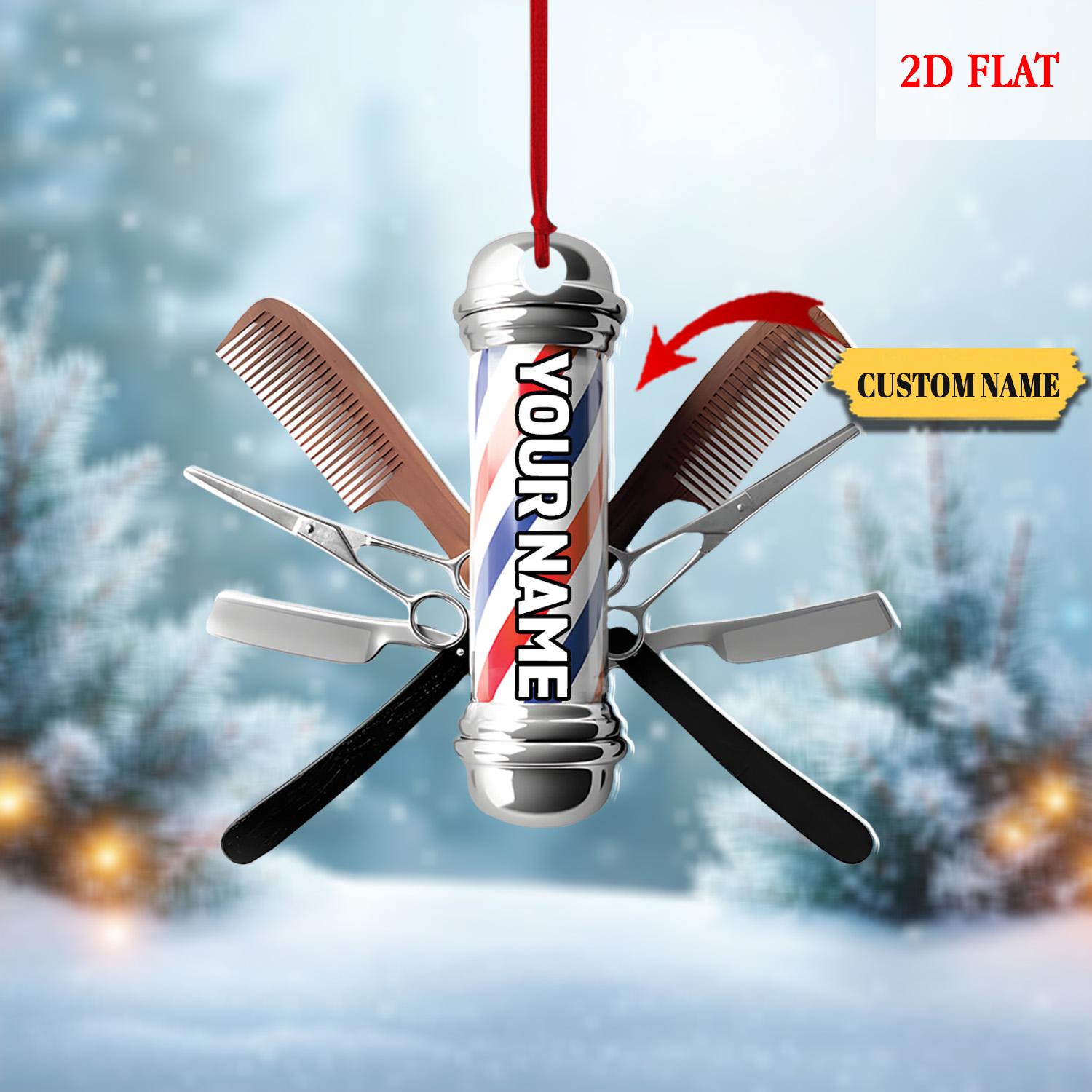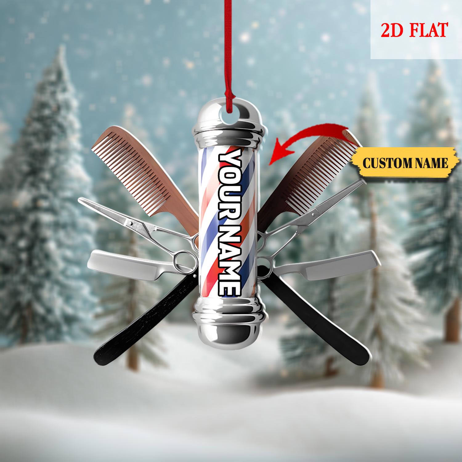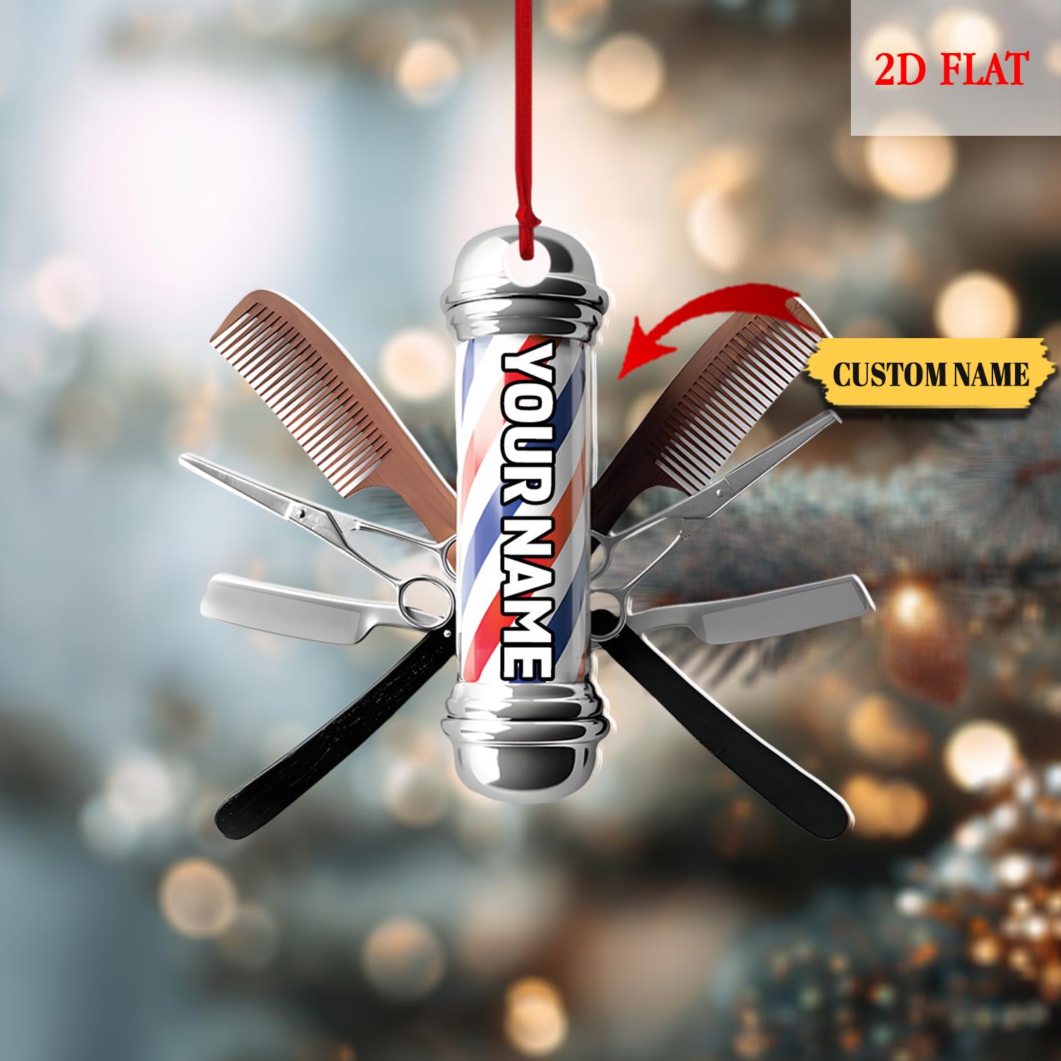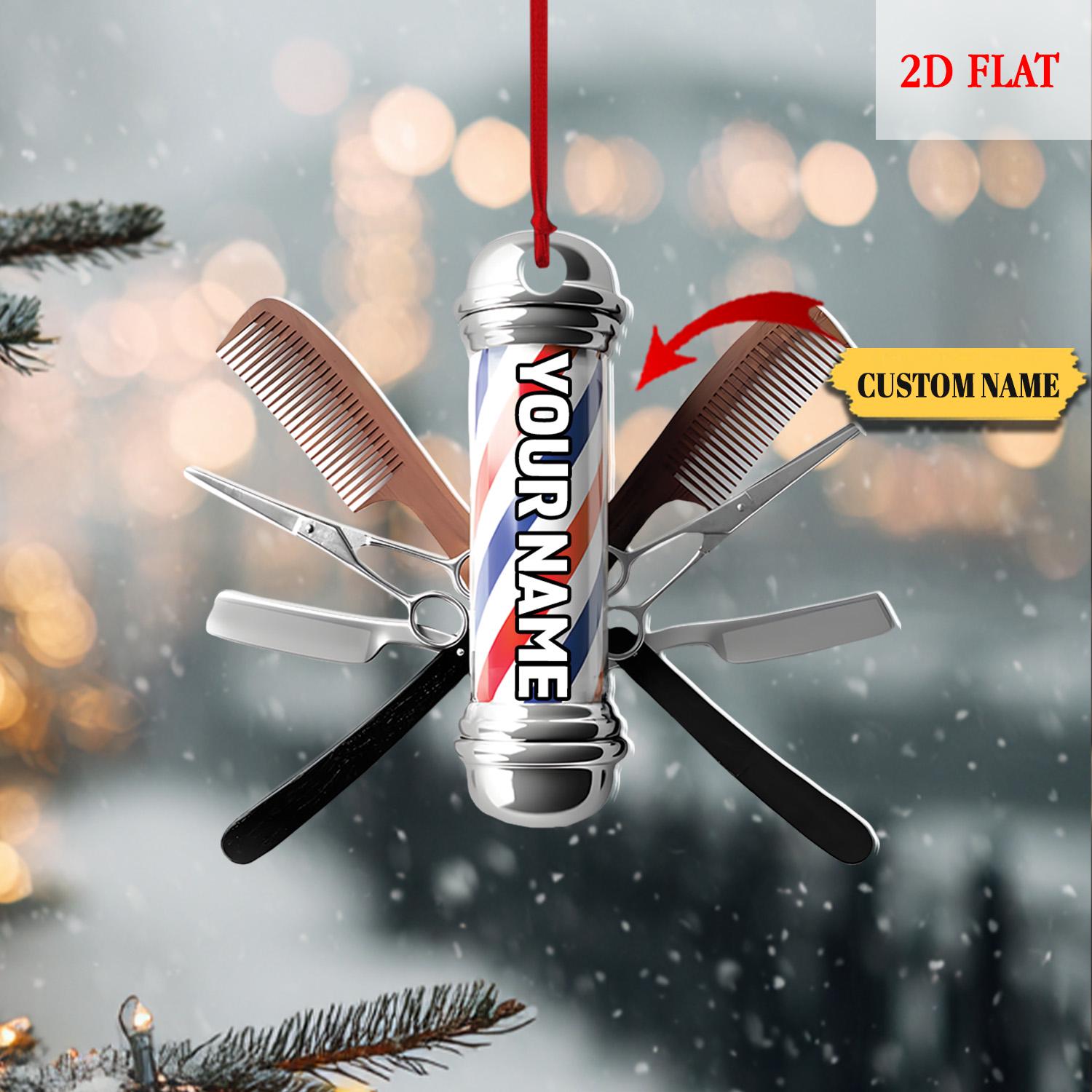 Personalized Hair cut bur bar logo Template Ornament, Christmas Tree Decoration Keepsake, Gift For Hairdresser Barber, Barber Shop