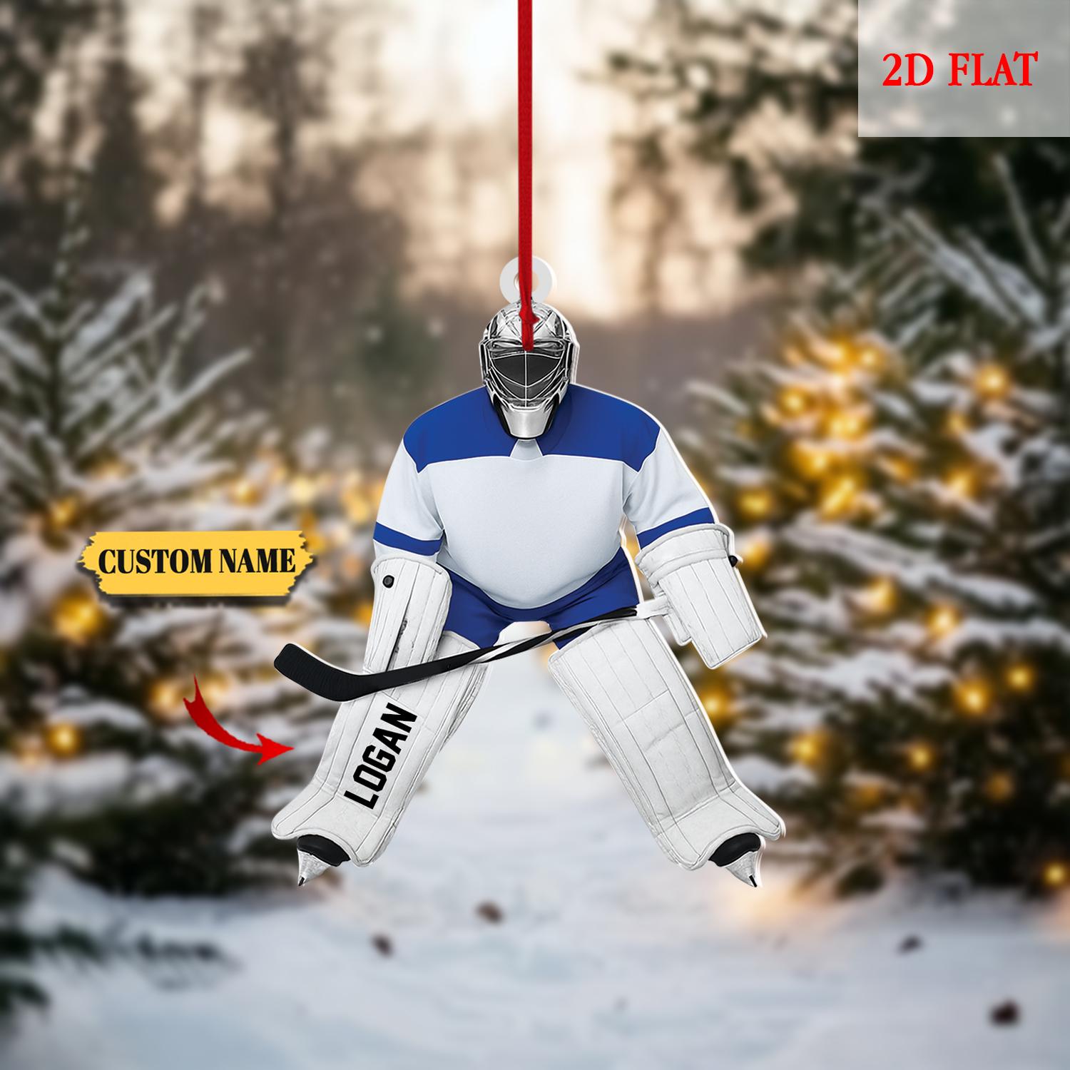 Personalized Hockey Christmas 2D Flat Ornament, Hockey Player Ornament,Sport Ornament, Gift for Hockey Lovers,Hockey Skates Helmet and Stick