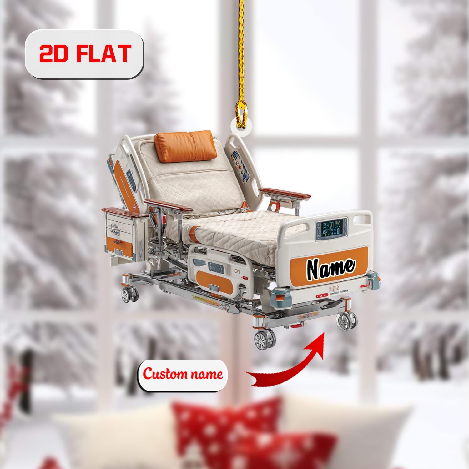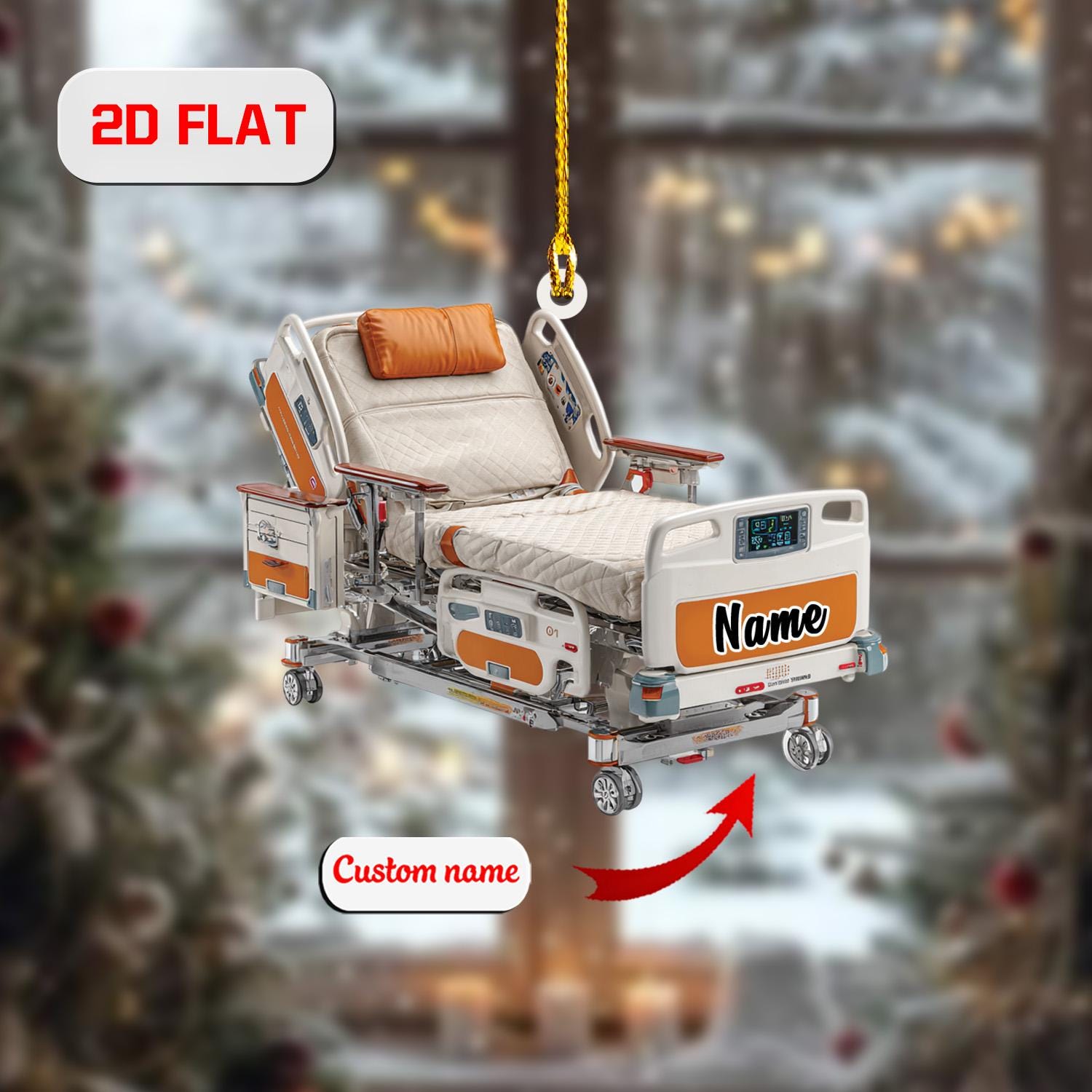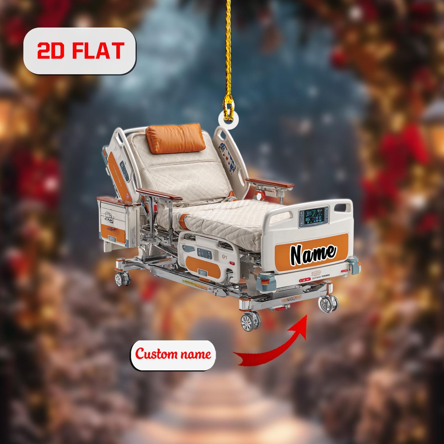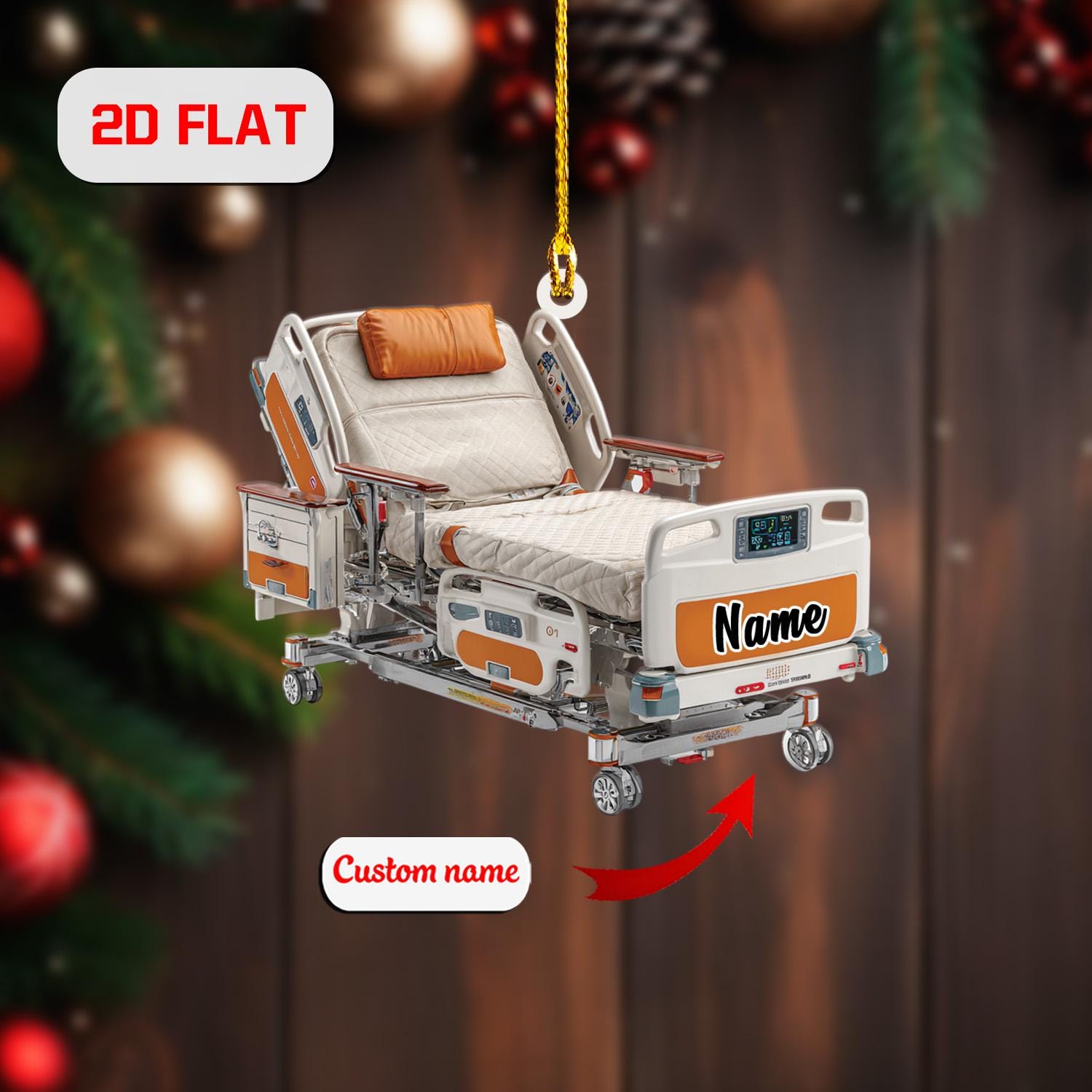 Personalized Hospital Bed Christmas Ornament Acrylic, Custom Name Nurse Doctor Gift, Holiday Tree Decoration for Healthcare Worker & Patient