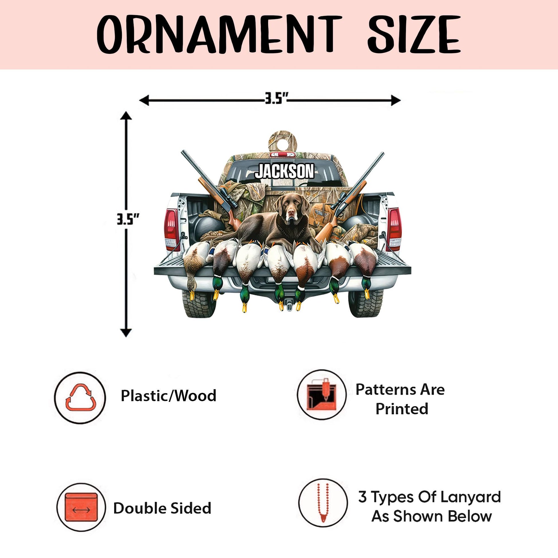 Personalized Hunting Flat Ornament, Custom Name Christmas Tree Ornament, Duck Hunting Christmas Ornament, Xmas Gift for Dad, Husband
