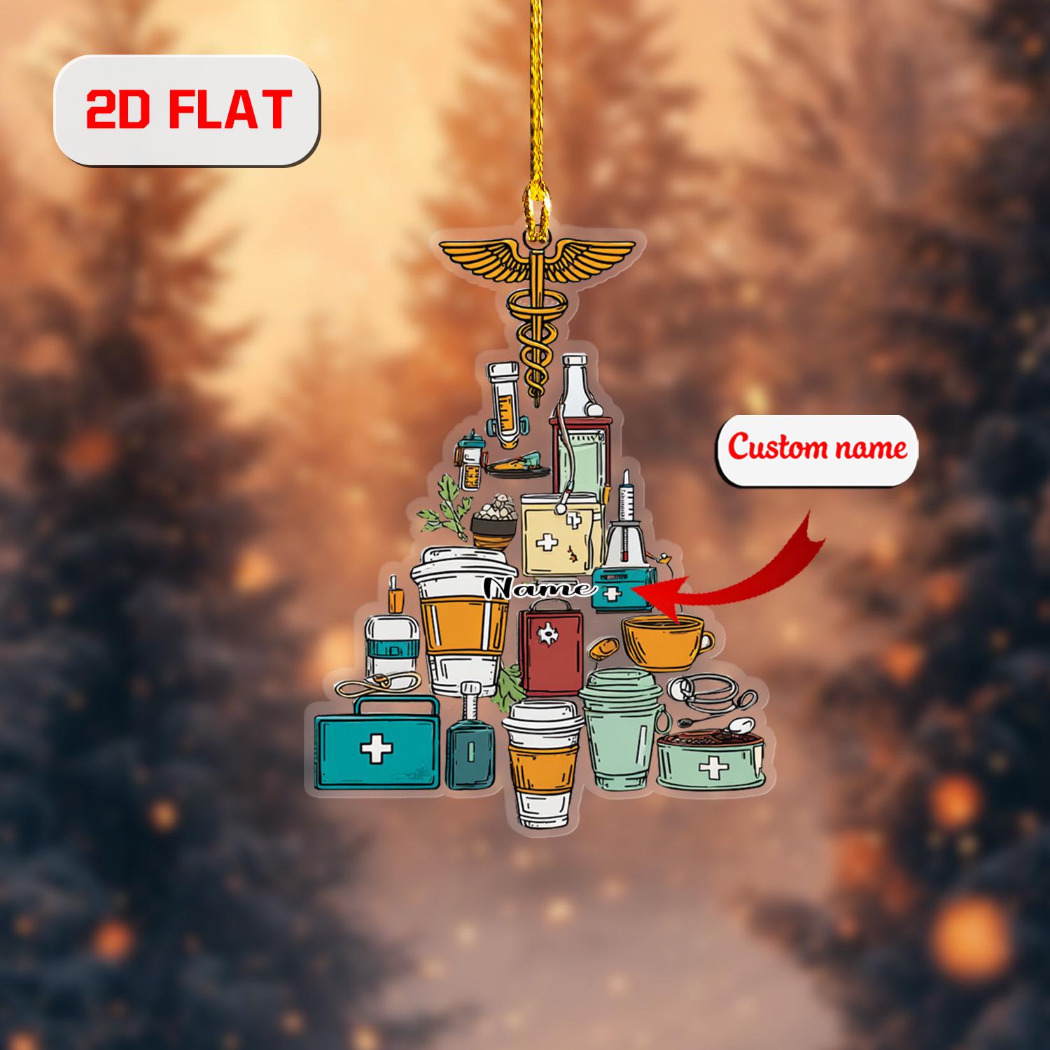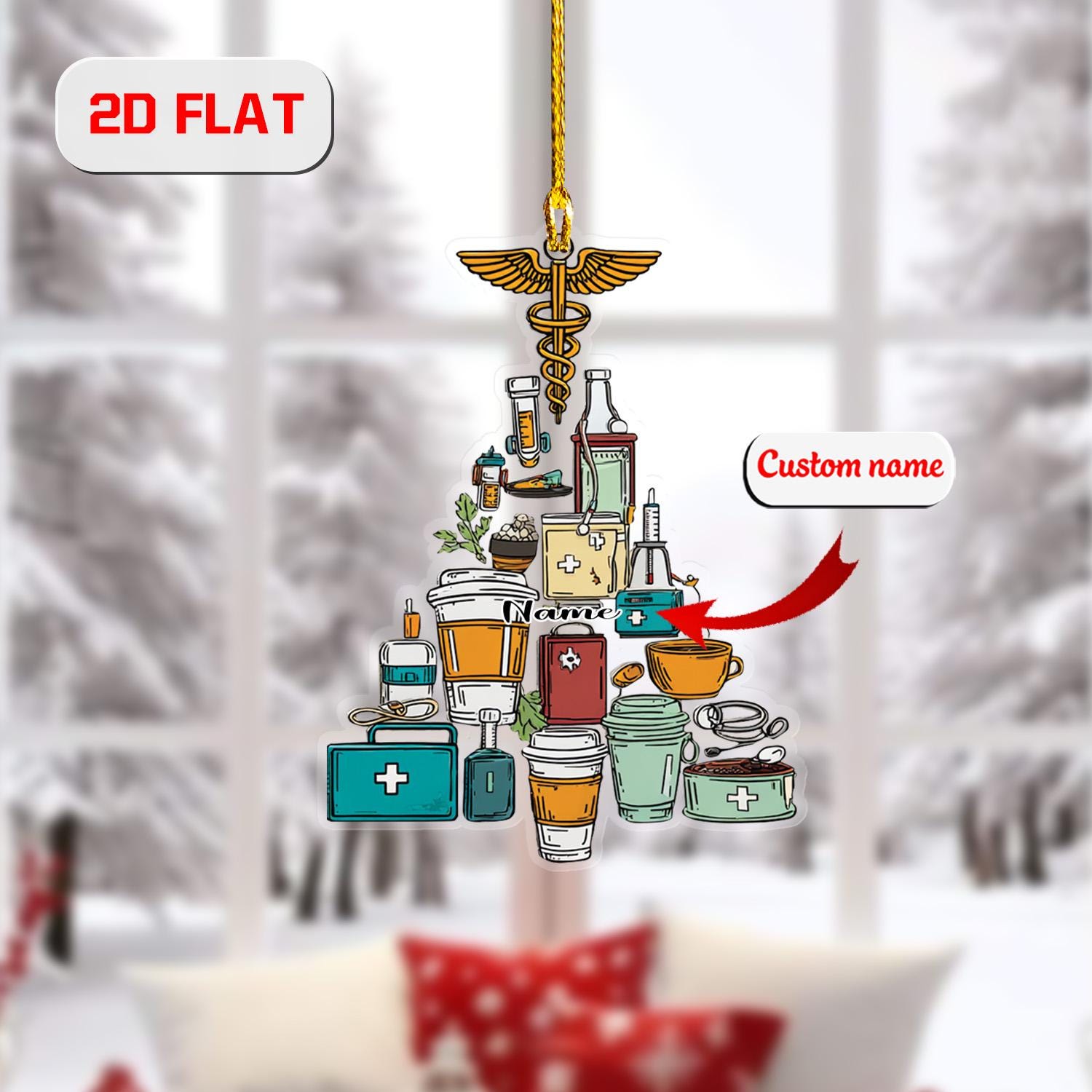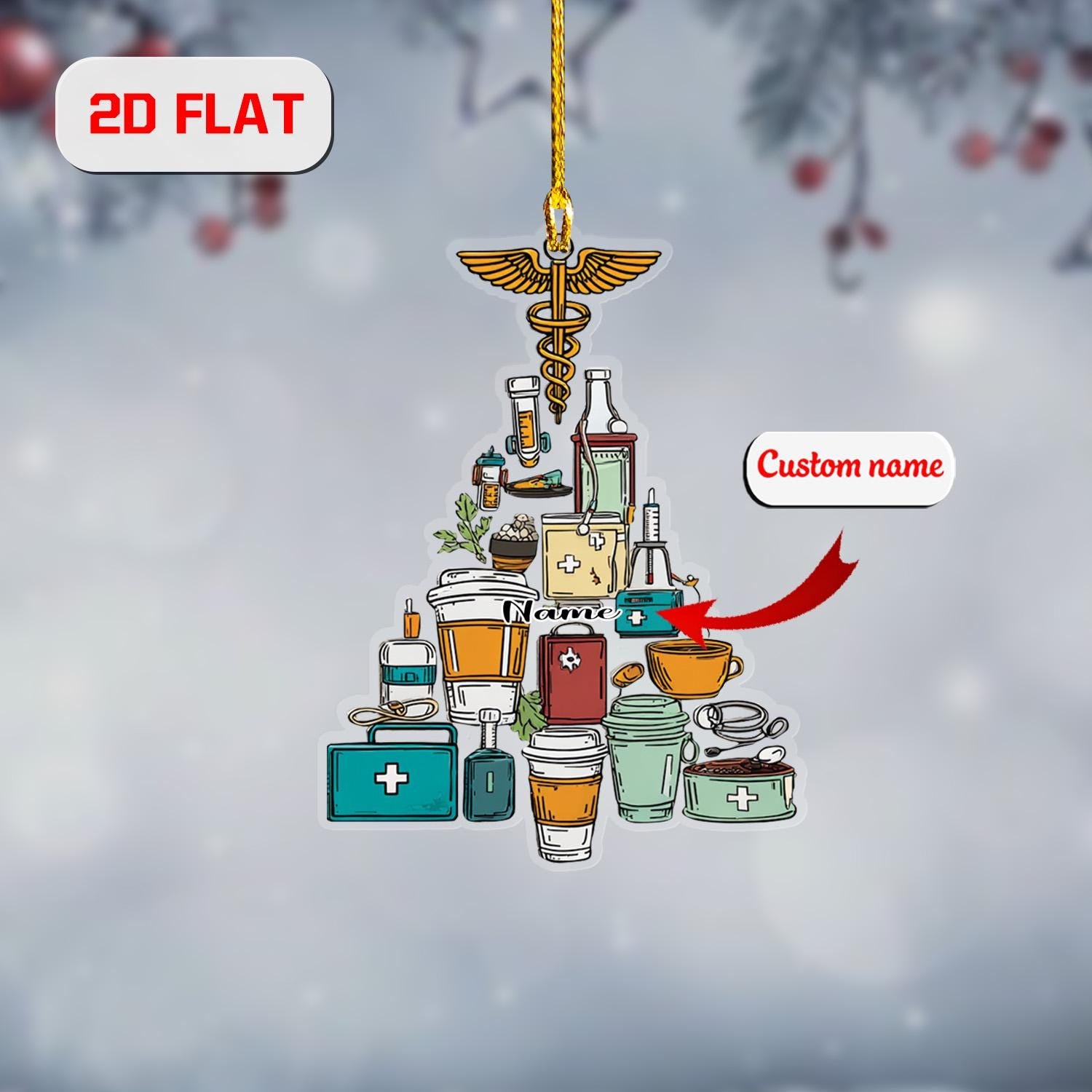 Personalized Medical Ornament Christmas Tree, Custom Name Nurse Doctor Gift, Healthcare Coffee Ornament for Medical Professional