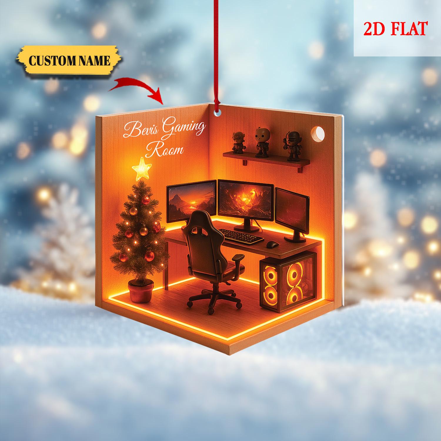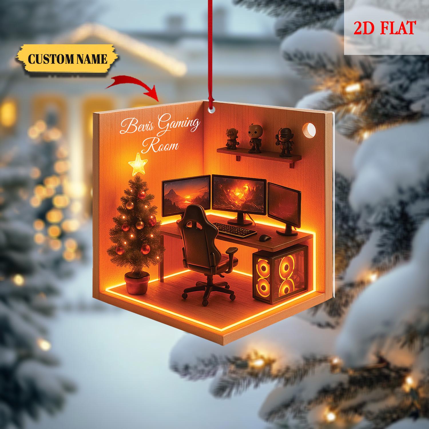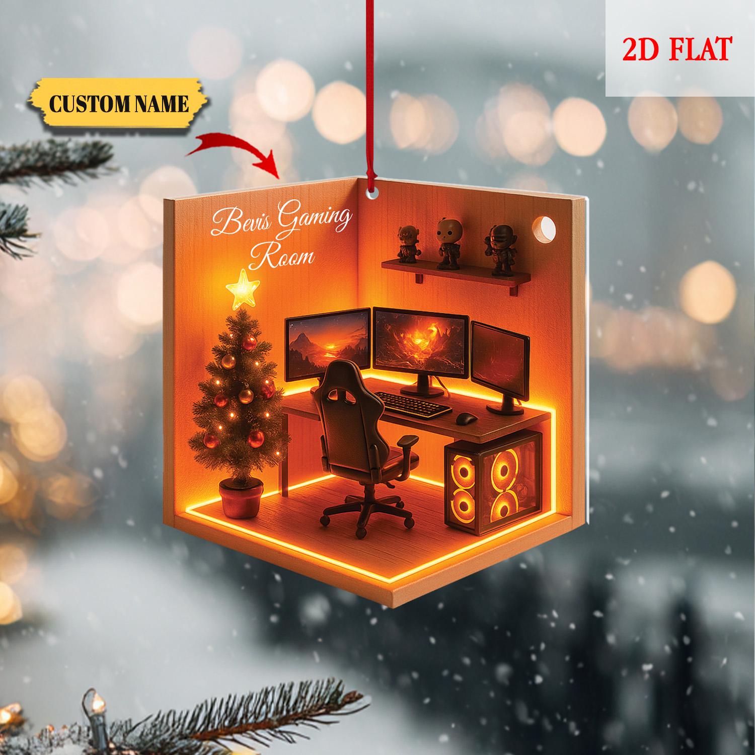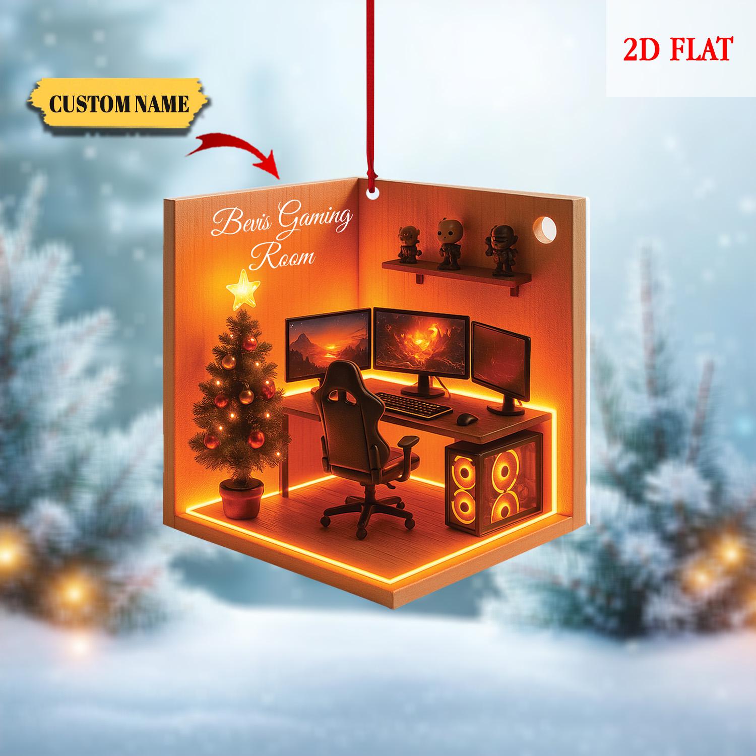 Personalized Name Dreamy Gaming Room 2D Flat Ornament, Gaming Christmas Ornament, Gift for Gamers, Christmas Gift, Gamer Room Decor
