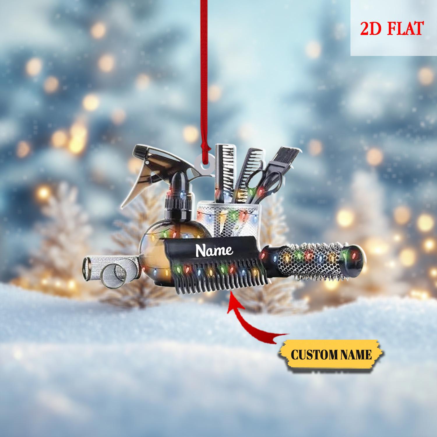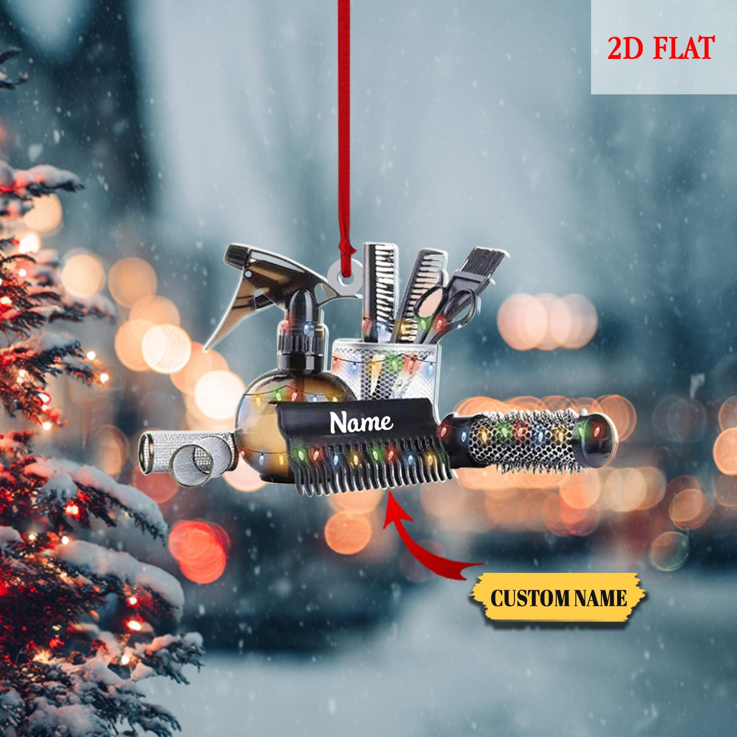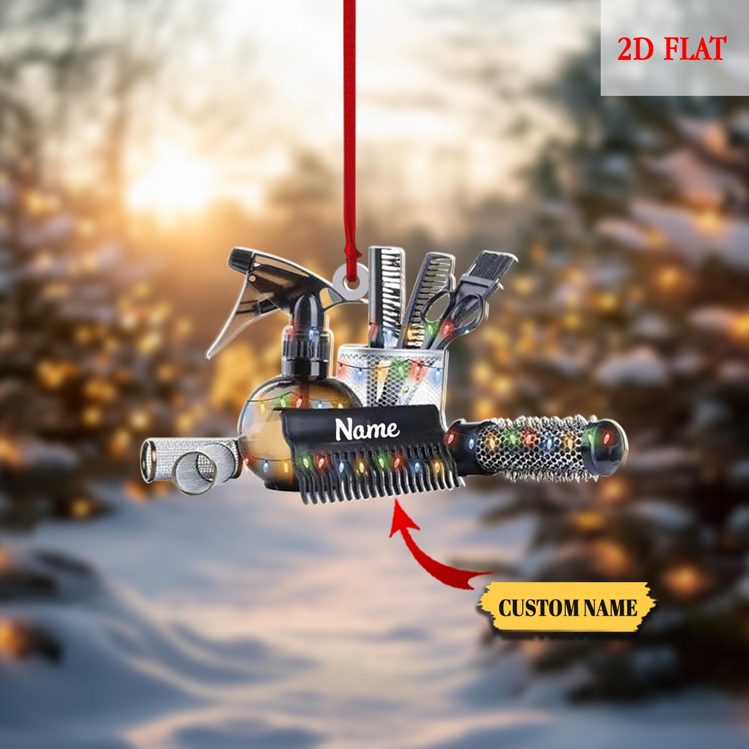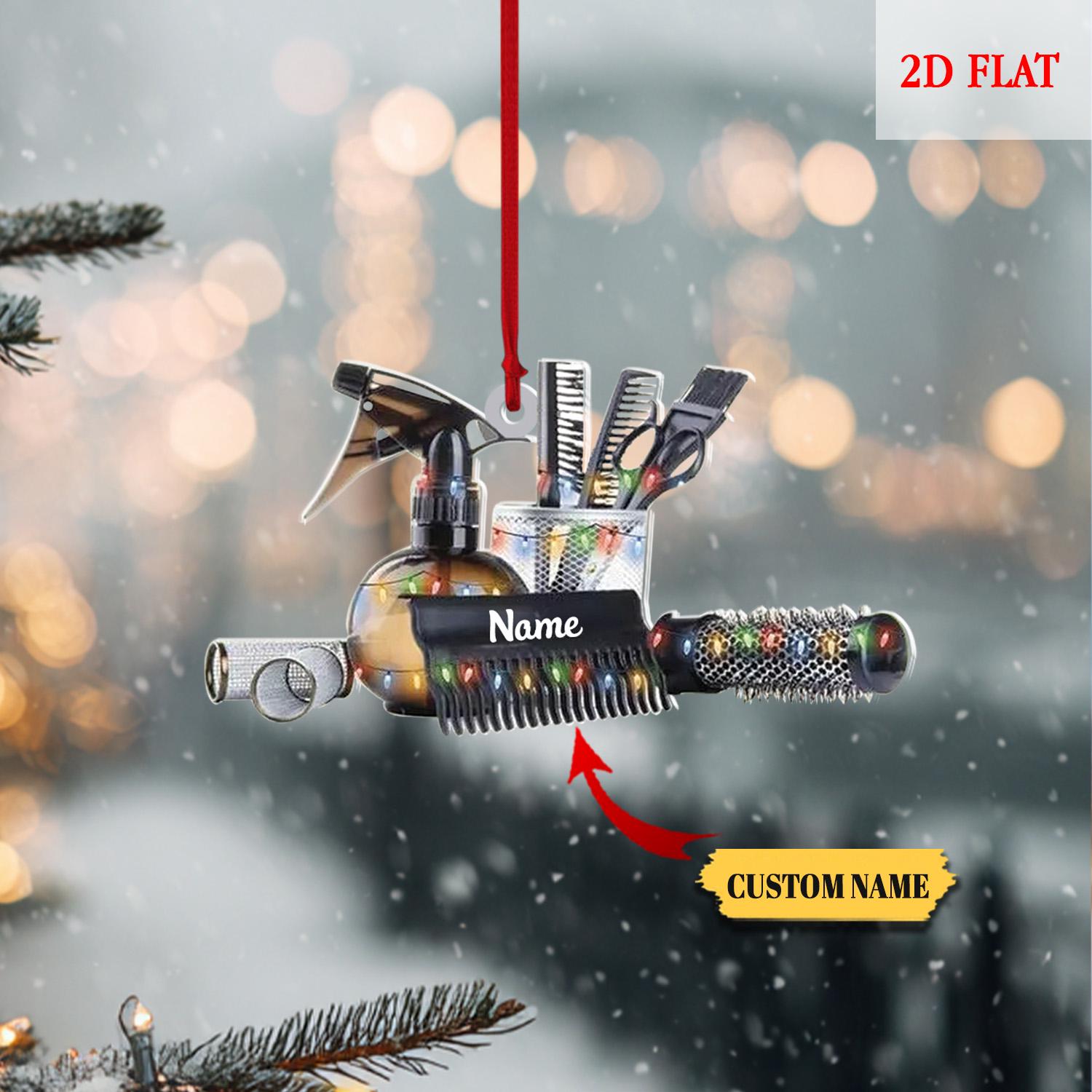 Personalized Name Hairstylist Ornament, Hairslylist Tool Set Ornament, 2D Flat Hairdresser Barber Acrylic Ornament, Teen Girl Christmas