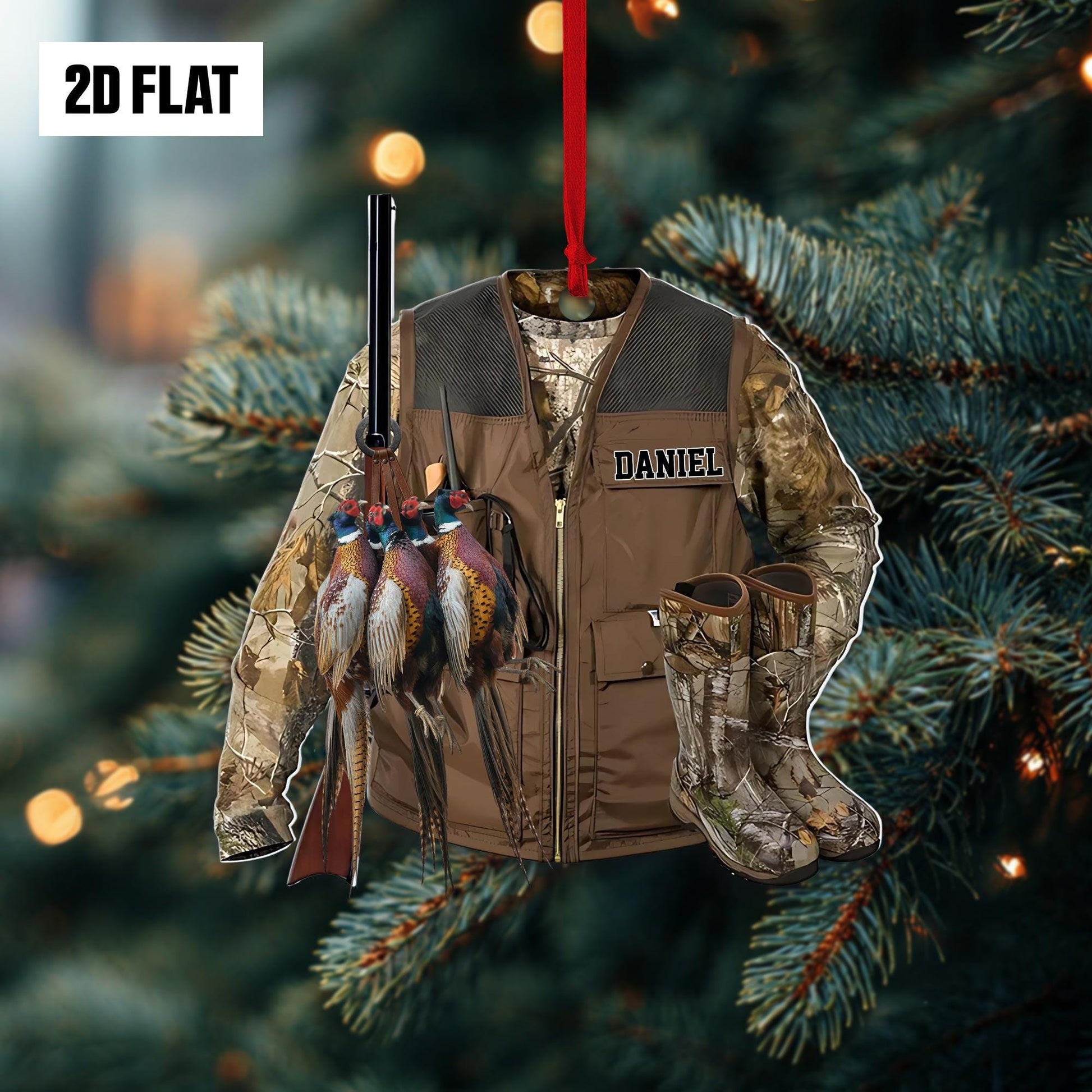 Personalized Pheasant Hunting 2D Flat Ornament, Hunting Uniform Rearview Mirror Car Accessories, Xmas Gift for Dad, Husband, Hunting Lover