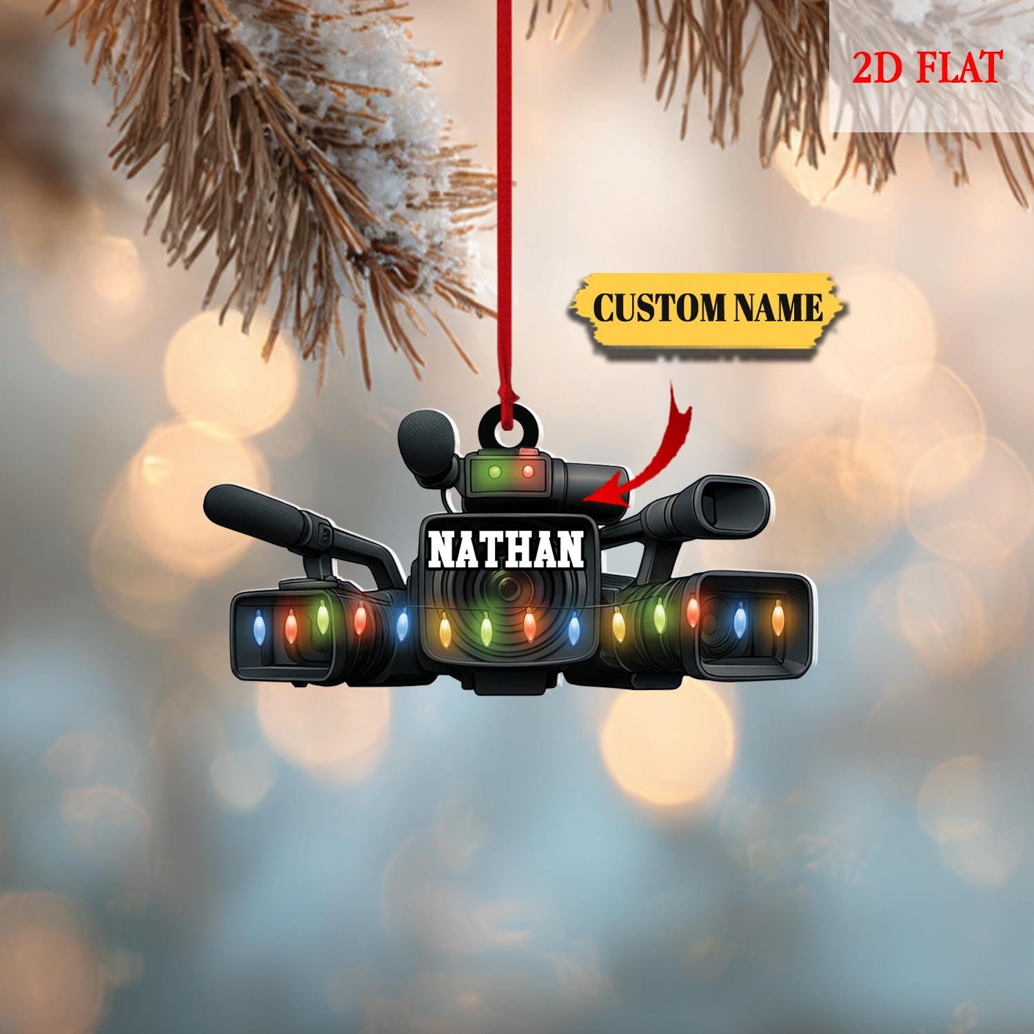 Personalized Professional Video Camera Camcorder 2D Flat Ornament, Angel Video camera Ornament Gift, Christmas Home Decor, Gift for Him