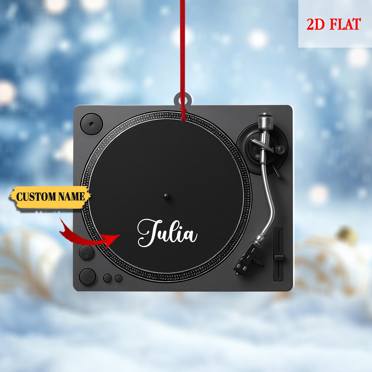 Personalized Record Player 2D Flat Acrylic Ornament, Acrylic Vinyl Turntable Christmas Decoration with Name, Gift for Music Lovers & DJs