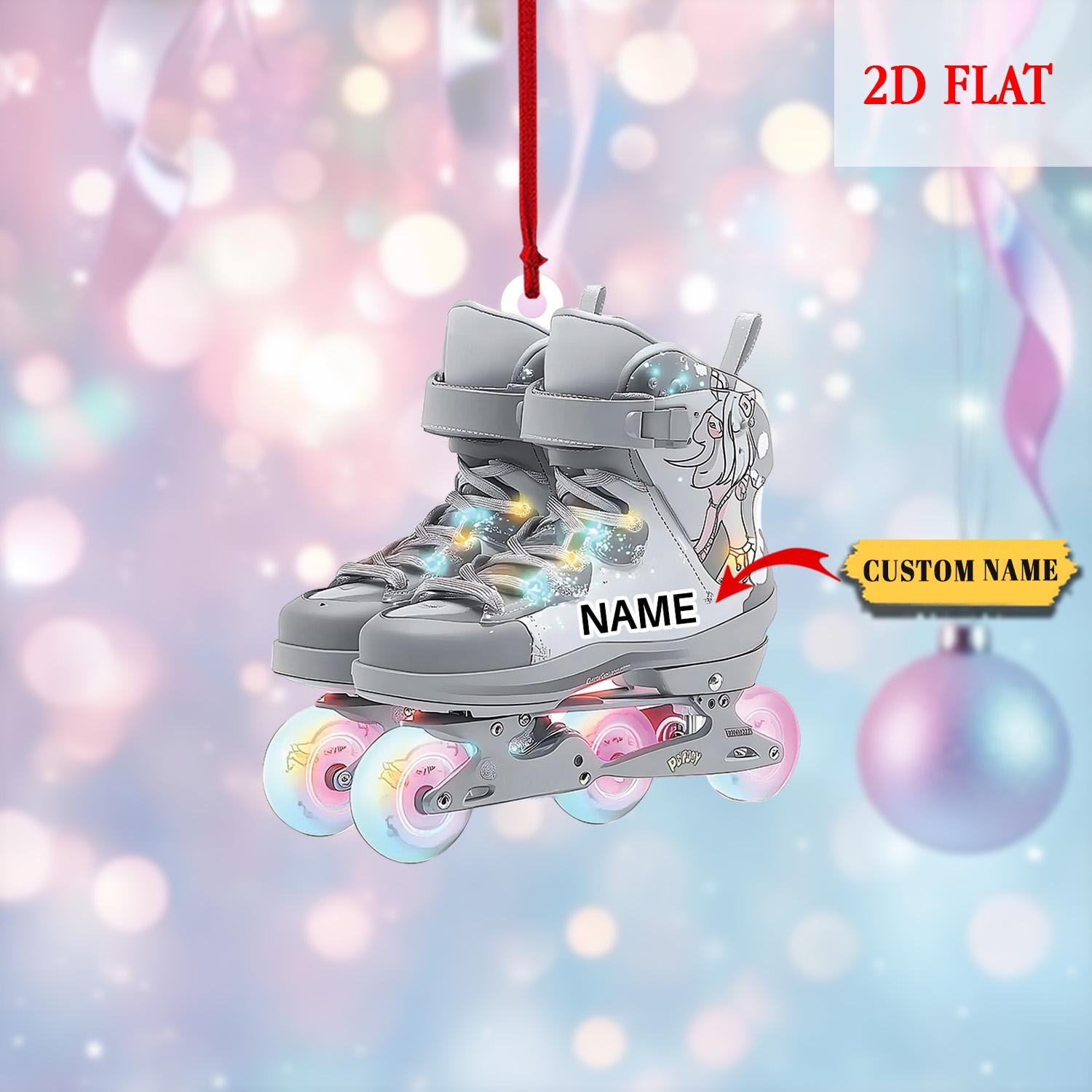Personalized Roller Skate 2d Flat Xmas Hanging Ornament, Roller Derby Christmas Light Car Ornament, Love Roller Skate Christmas Ornament