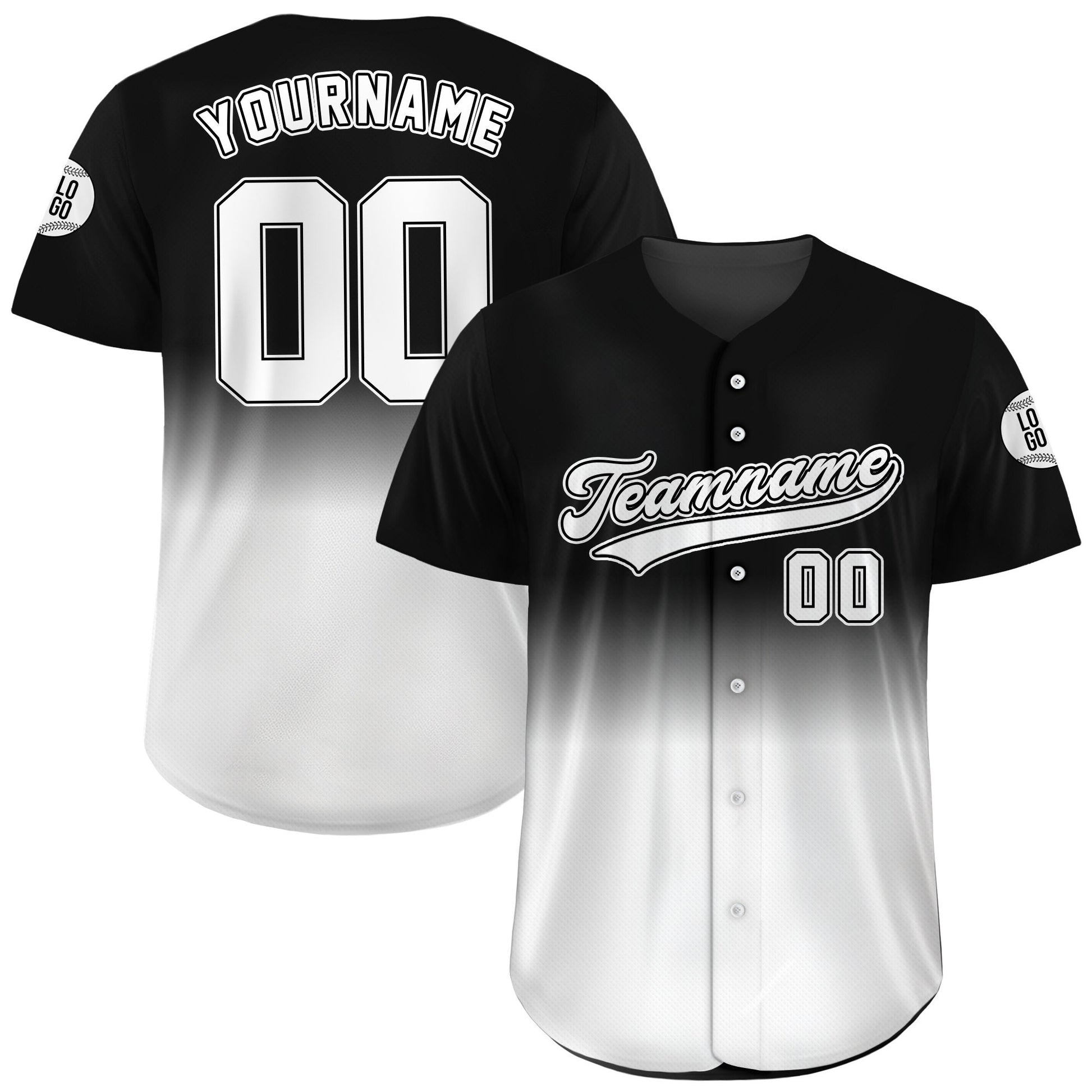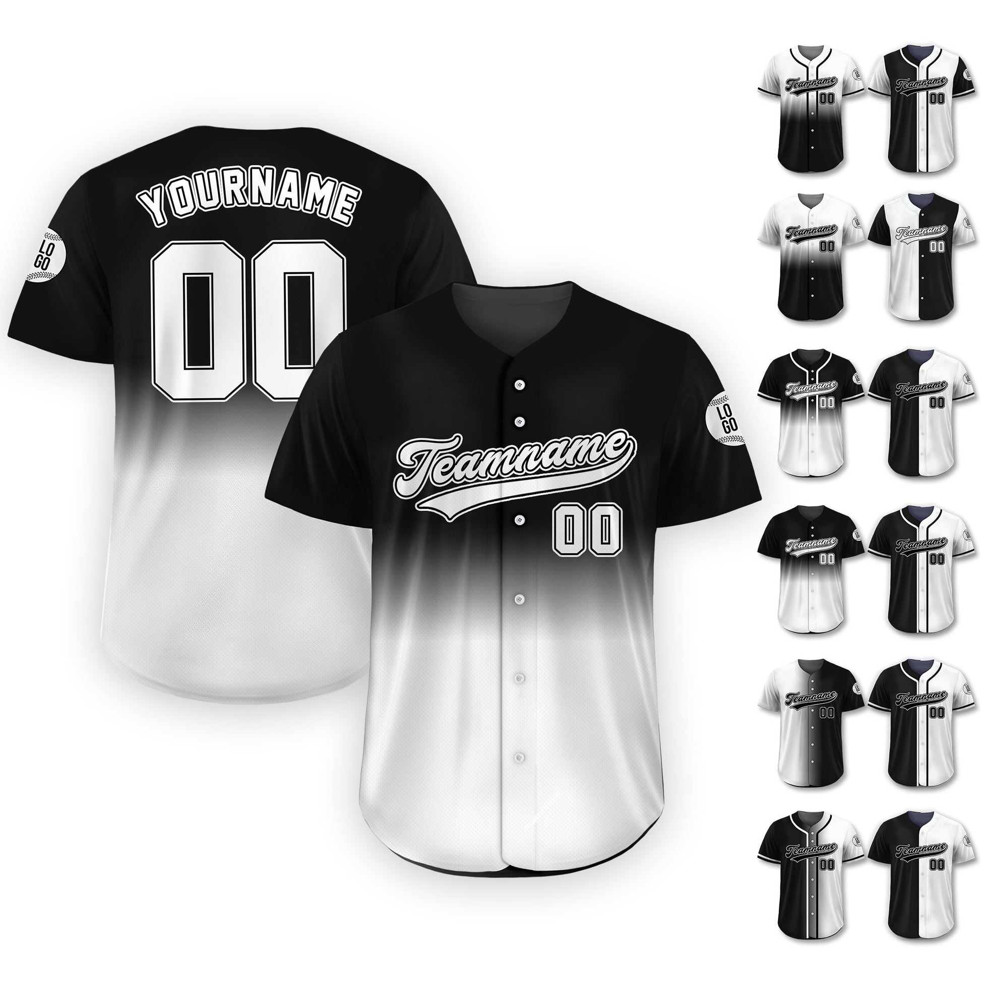Personalized Team Name Number Logo Baseball Jersey, Custom Jersey for Men Women Youth Kid, Printed Black White Gradient Jersey Button Down