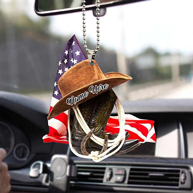 Hataí agus Buataisí Bó Buachaillí Pearsanta ó SAM Ornáid Aicrileach Múnlaithe Dhá Thaobh Do Charr, Ornáidí Crochta Gluaisteán, Maisiú Nollag