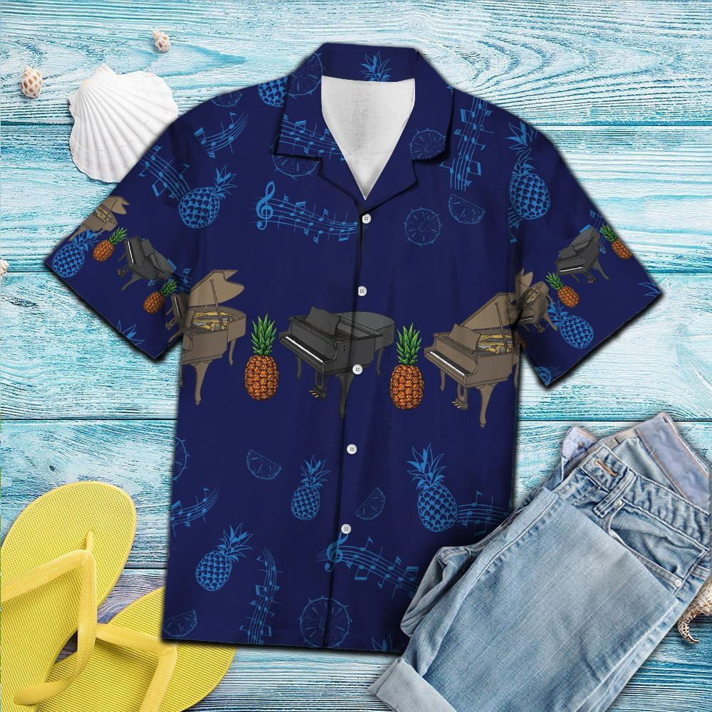 Pineapple Pianó Le Nótaí Ceoil I Léine Haváís Deep Blue, Bronntanas Léine Haváíais, Bronntanas Nollag