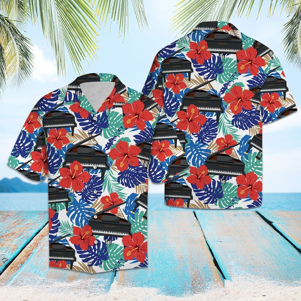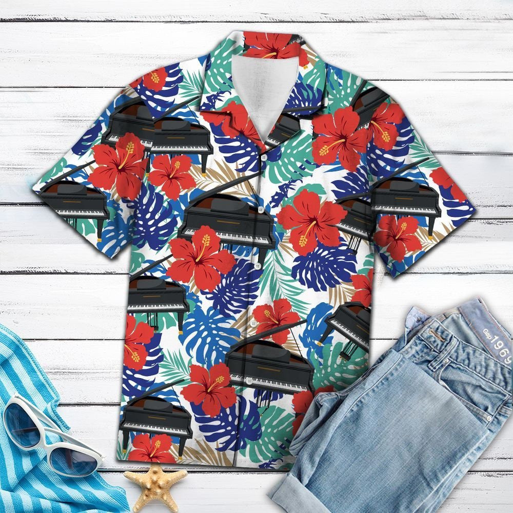 Pianó le Hibiscus Dearga Agus Duilleoga Trópaiceacha Dear Léine Haváí, Bronntanas Léine Haváíais, Bronntanas Nollag