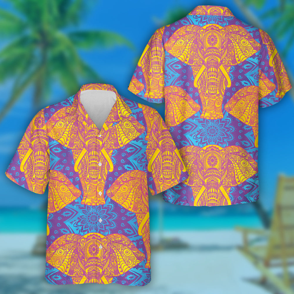 Mandala Eilifint Bándearg Agus Buí ar Chúlra Corcra Léine haváí, Bronntanas Léine Haváís, Bronntanas Nollag