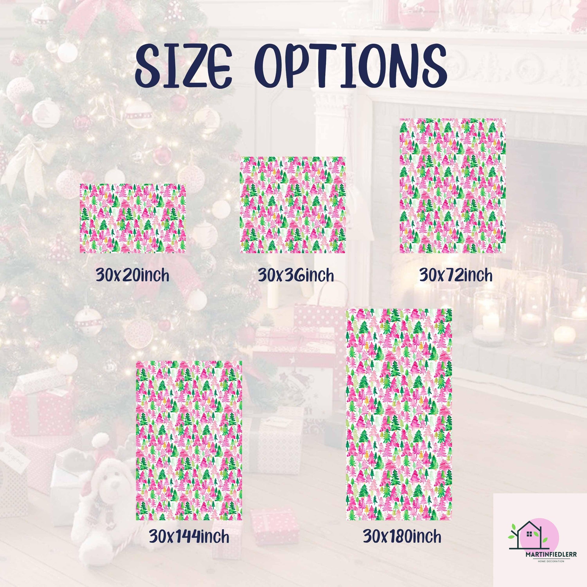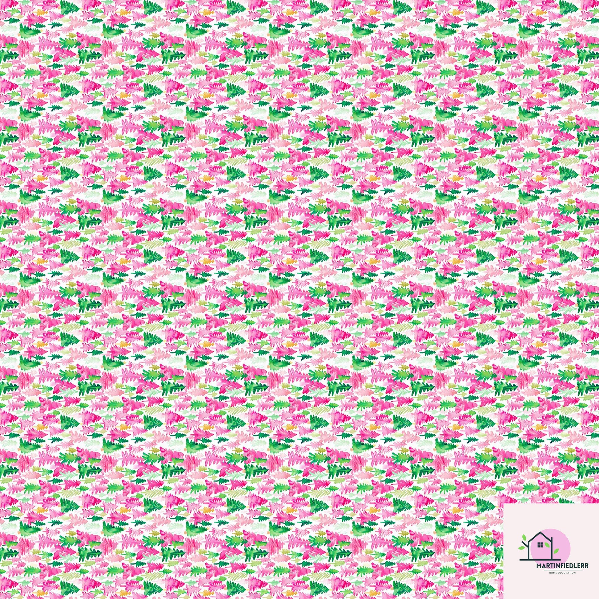 Pink Green Tree Christmas Wrapping Paper, Watercolor Holiday Gift Wrap Sheets, Festive Xmas Forest Packaging, Cute Winter Party Gift Wrap