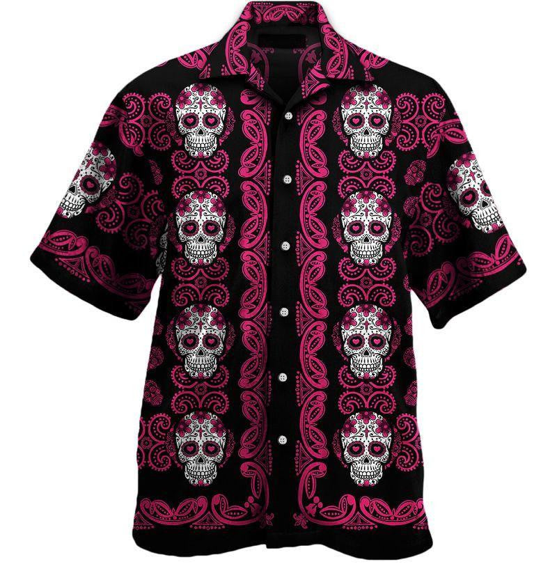 Patrún Skull Siúcra Bándearg Cúlra Uathúil Dearadh Léine Haváís, Bronntanas Léine Haváís, Bronntanas Nollag