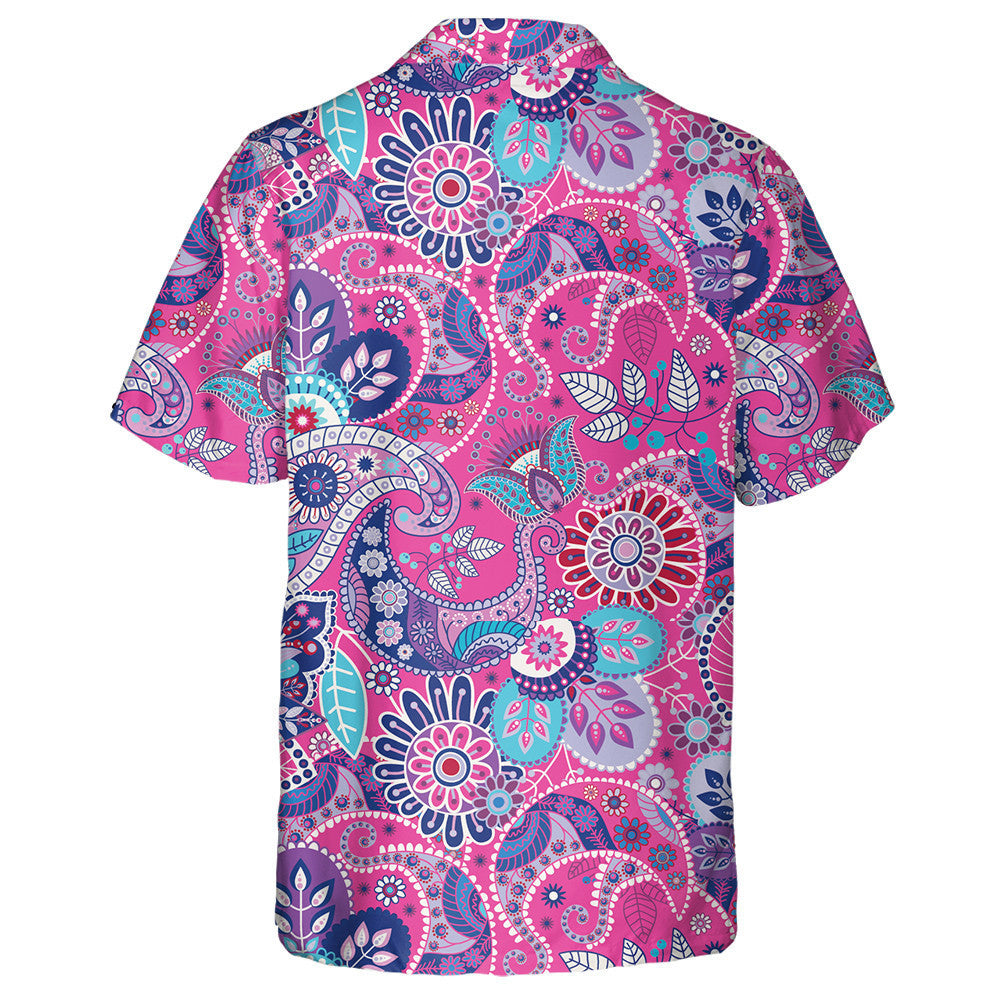 Cúlra Paisley Téama Bándearg le Bláthanna Stílithe Dearadh Léine Haváís, Bronntanas Léine Haváís, Bronntanas Nollag