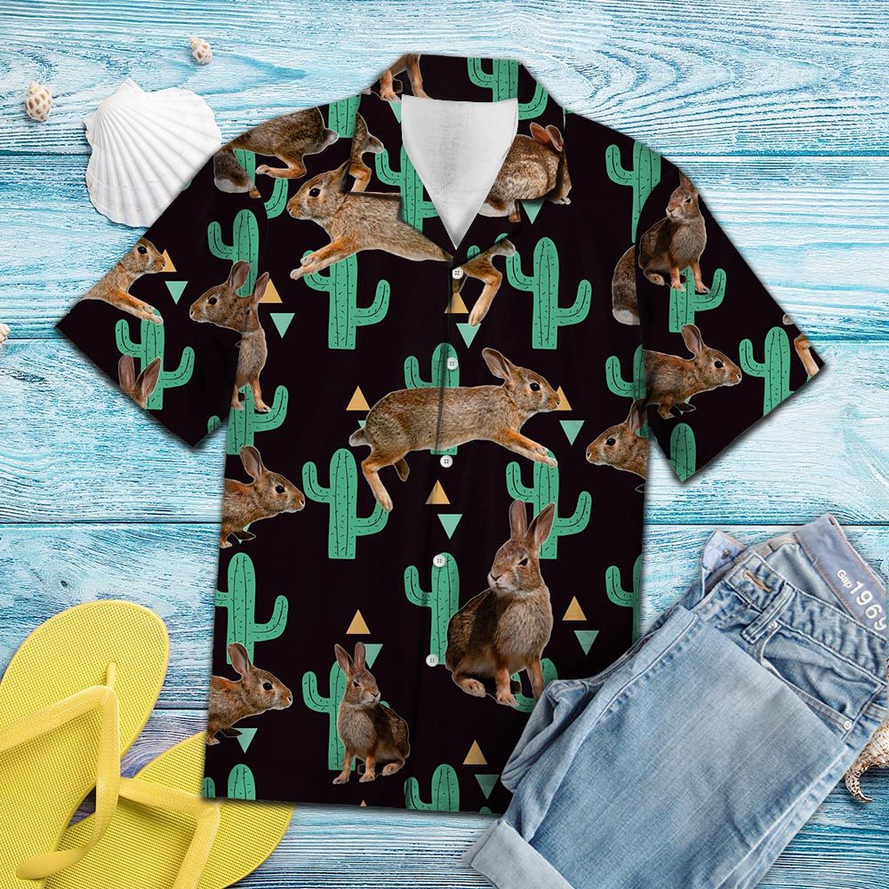 Folaigh Coinín spraíúil I bPatrún Gairdín Cactus Léine Haváís, Bronntanas Léine Haváíais, Bronntanas Nollag