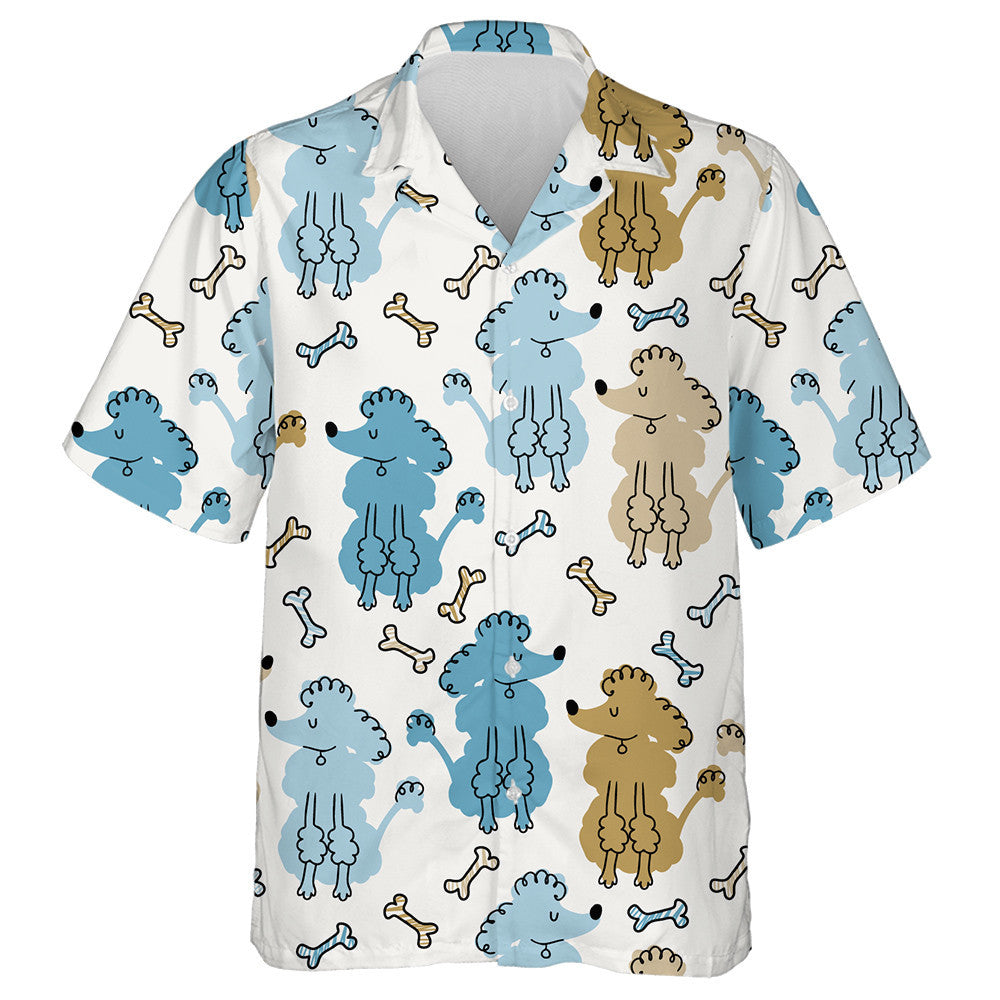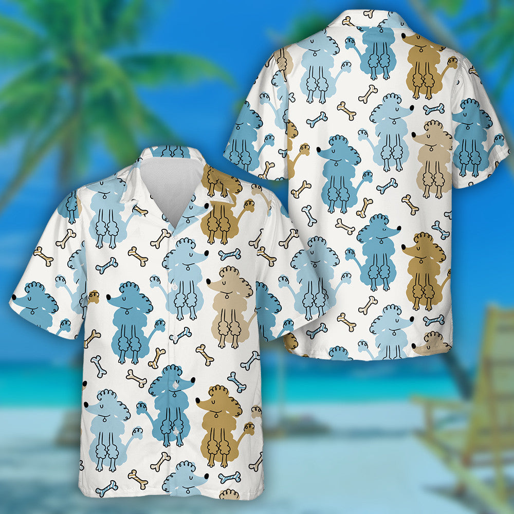 Madraí Poodle Agus Cnámh ar Chúlra Bán Léine Haváís, Bronntanas Léine Haváíais, Bronntanas Nollag