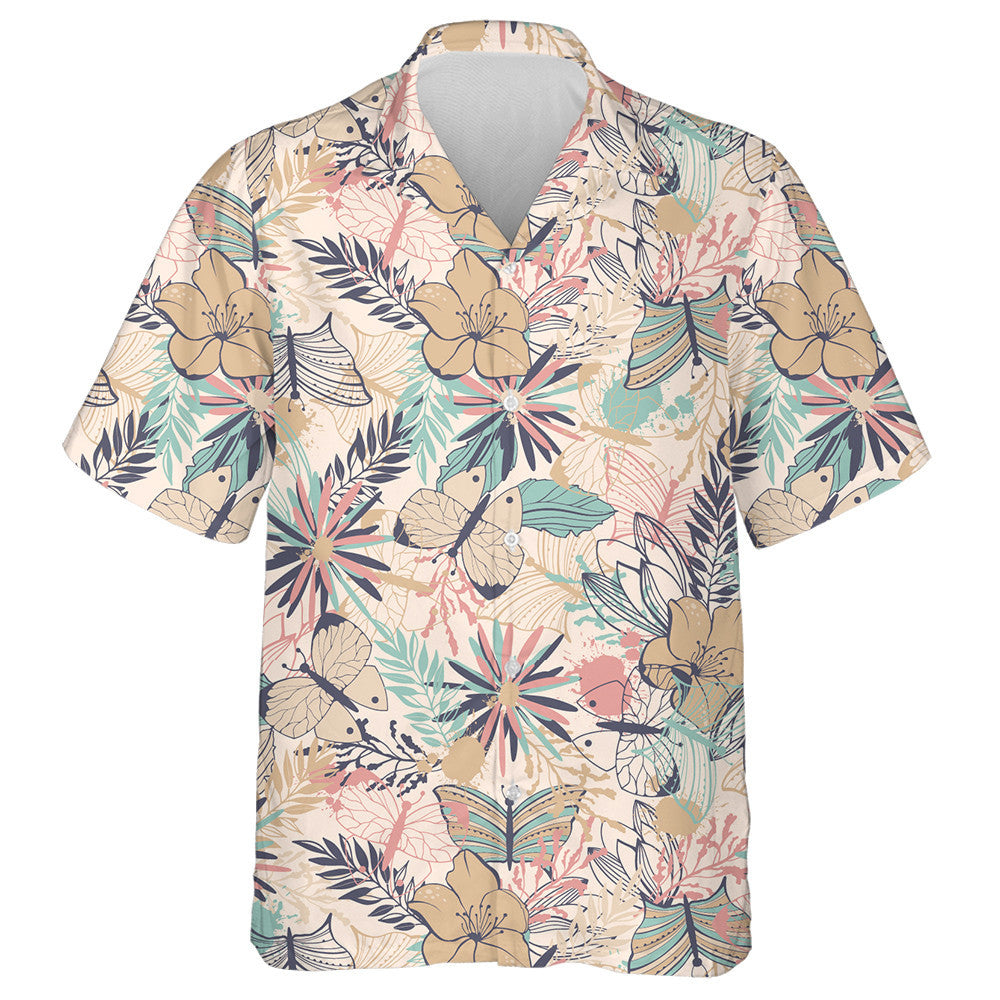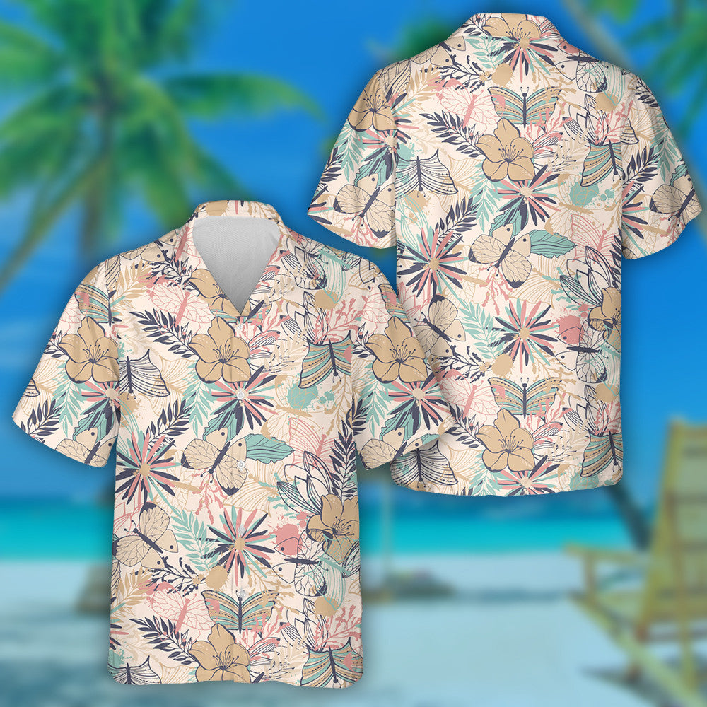 Téama Pretty Mystical Féileacán Agus Bláthanna Stíl Retro Léine Haváís, Bronntanas Léine Haváís, Bronntanas Nollag