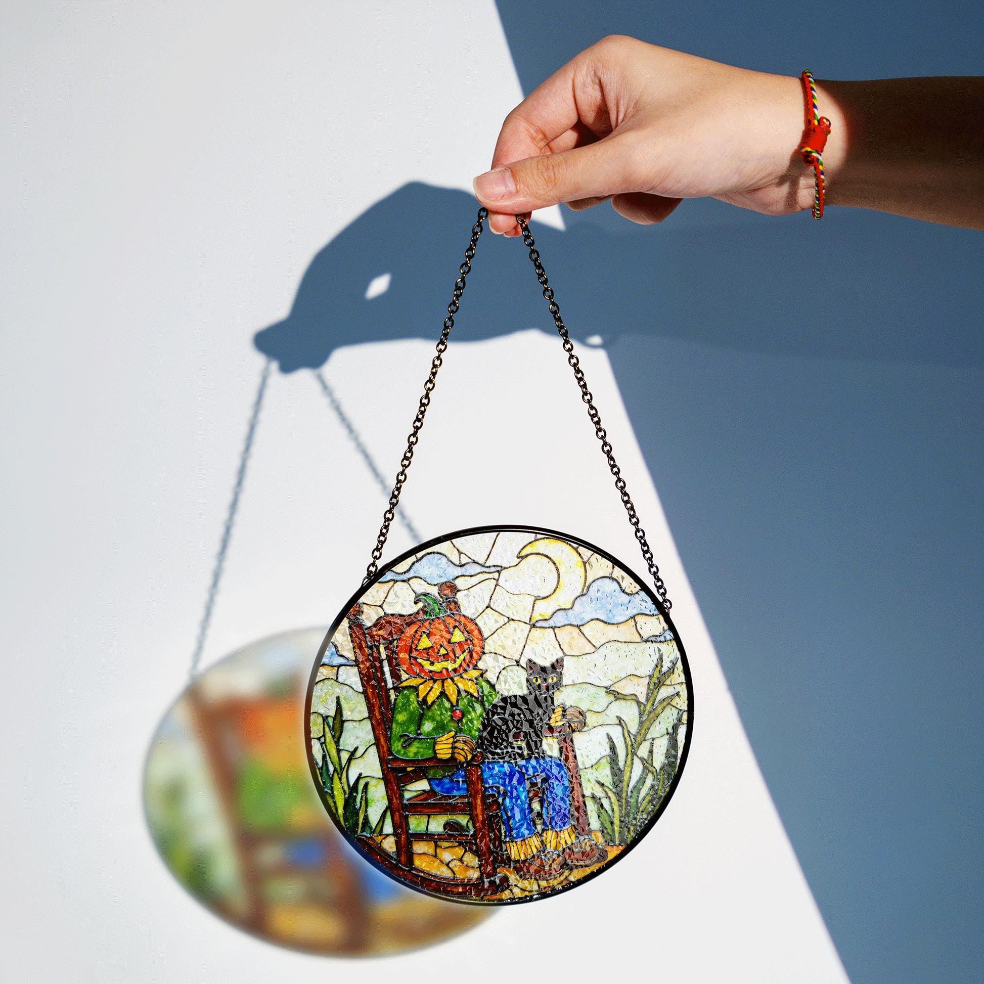 Comes with integrated hooks, a sleek black chain, and a suction cup for hassle-free hanging — perfect for windows, glass doors, or any sunny spot.