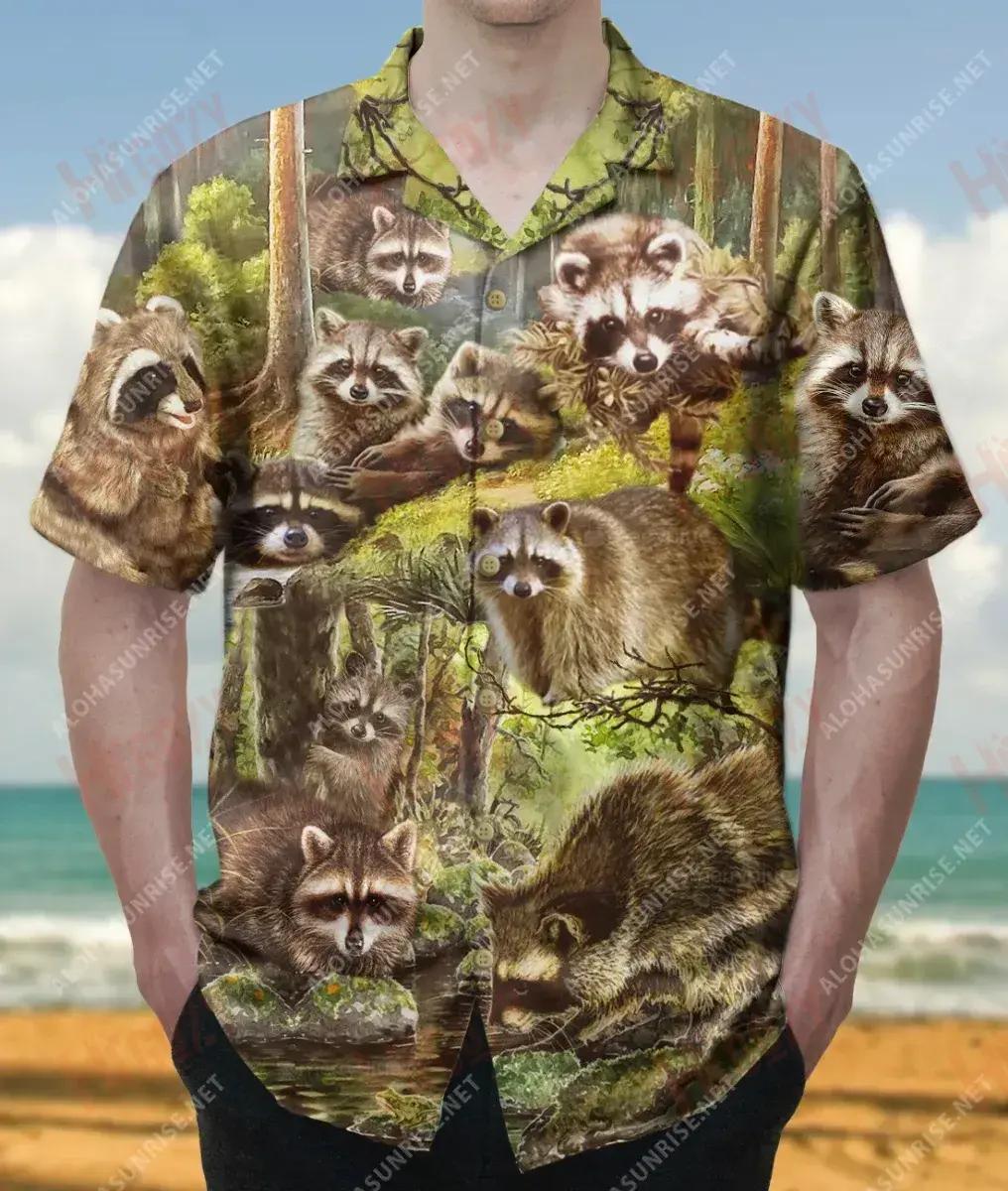 Is Ainmhí Spioradálta Raccon Léine Ghearr Muinchille Unisex Léinte T an tSamhraidh Léinte Craicne Haváís Léinte haváíais do Mhná, Bronntanas Léine Haváís, Bronntanas Nollag