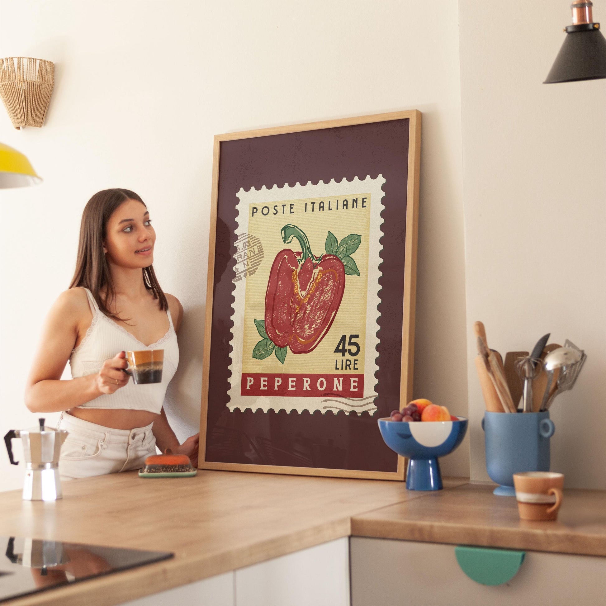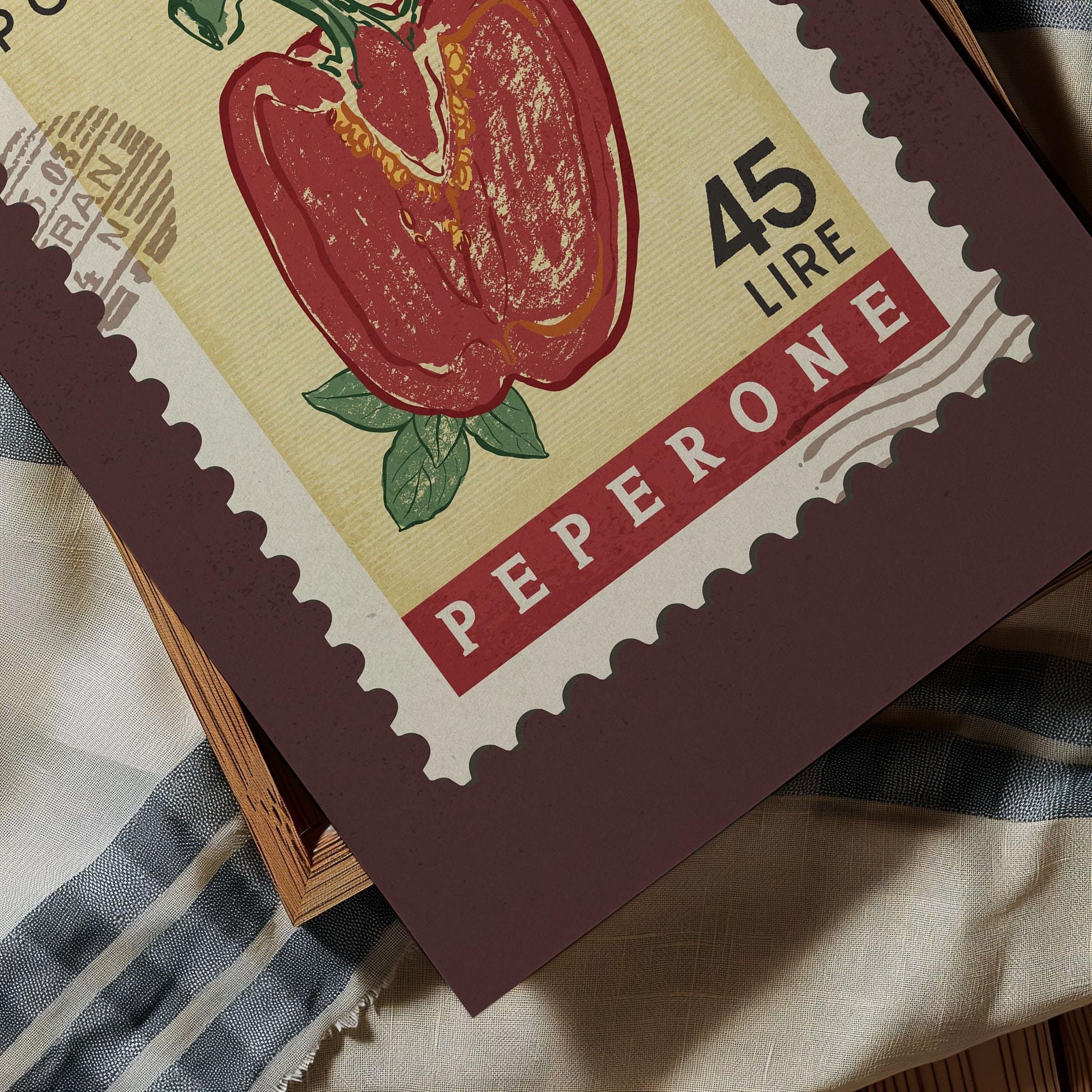 Red Bell Pepper Poster, Retro Stamp Poster | Retro Kitchen Print | Italian Food Art Print, Trendy Kitchen Decor, Unique Food Gift
