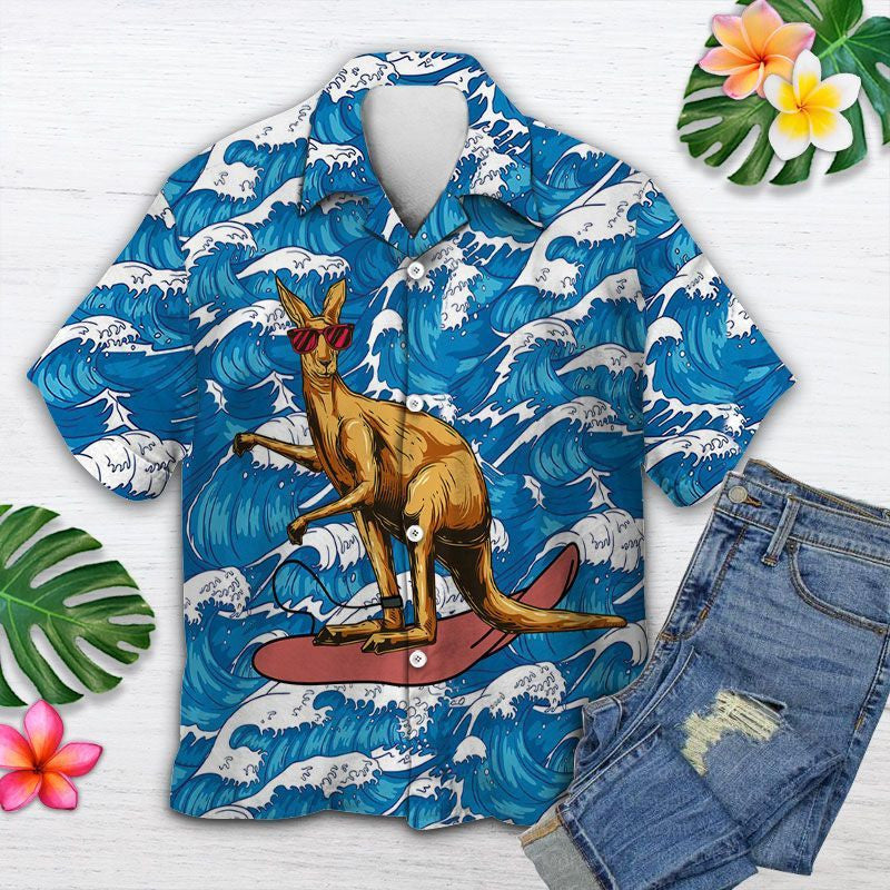 Gloiní Dearga Cangarú Surfála Ar Thonnta Aigéin Patrún Léine Haváí, Bronntanas Léine Haváís, Bronntanas Nollag