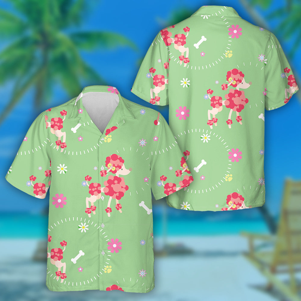 Madra Poodle Dearg le Lorg Cnámh Agus Léine Bláth Haváis, Bronntanas Léine Haváís, Bronntanas Nollag