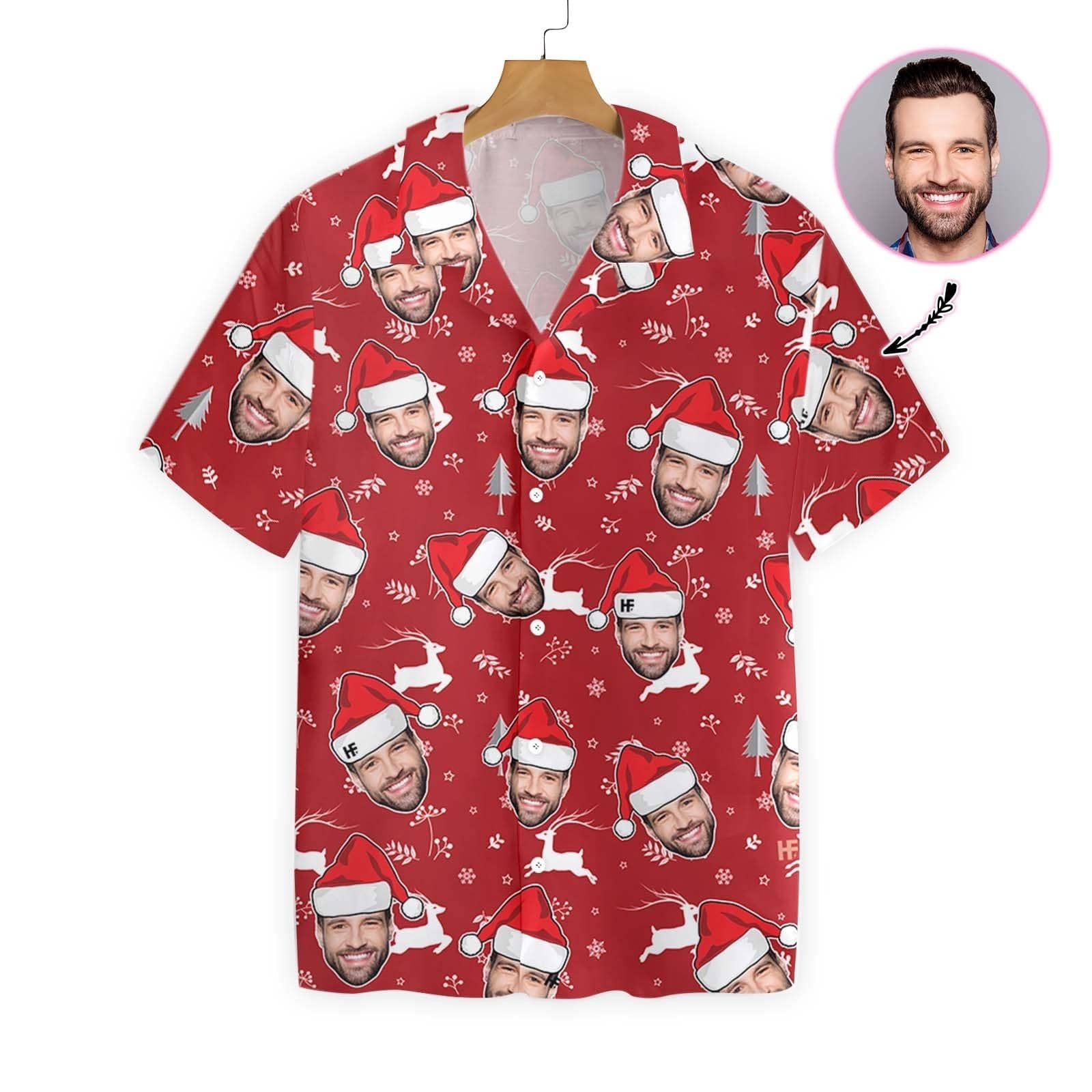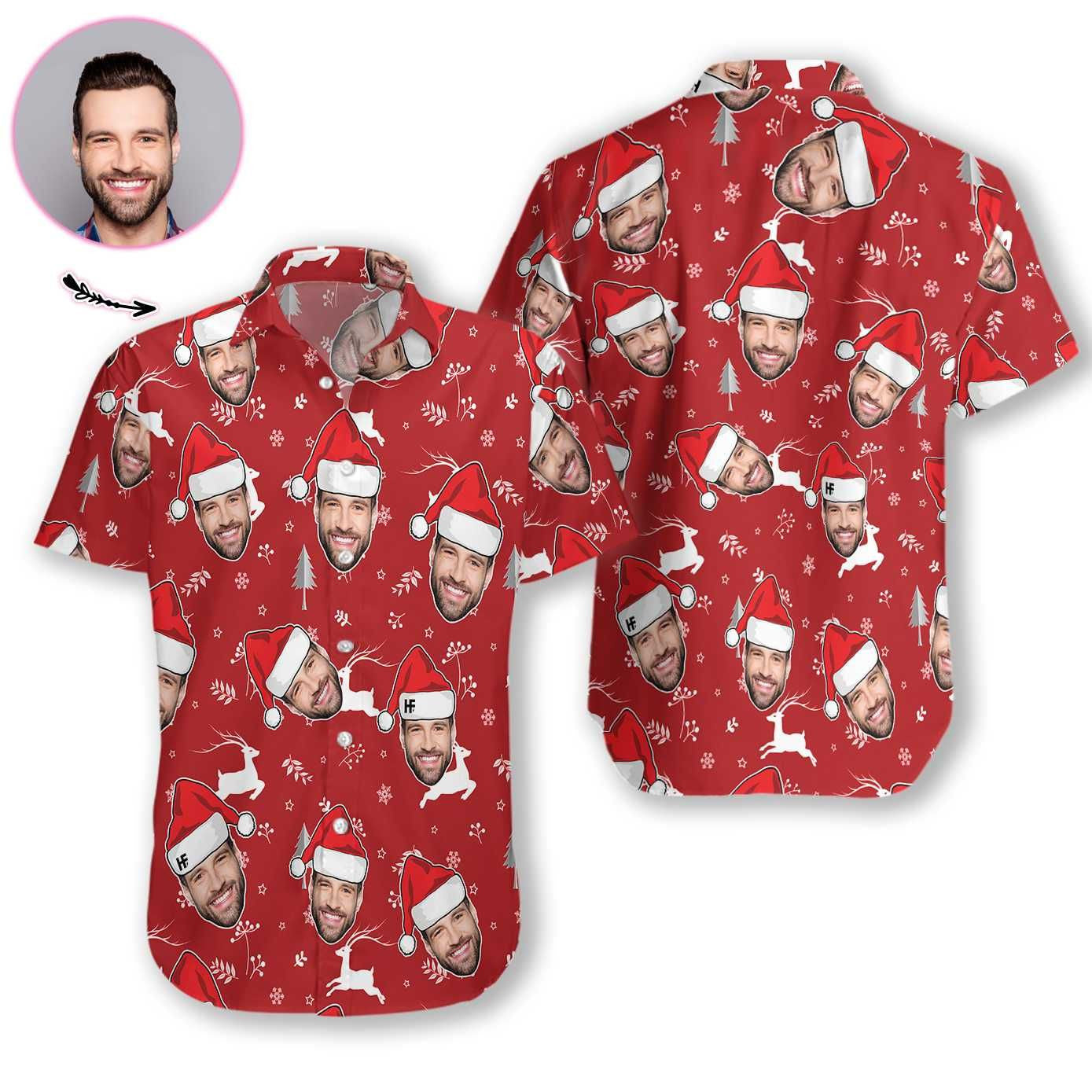 Téama Dearg Fianna Bána Agus Cáithníní Sneachta Léine Haváise le Grianghraf Saincheaptha, Bronntanas Léine Haváíais, Bronntanas Nollag