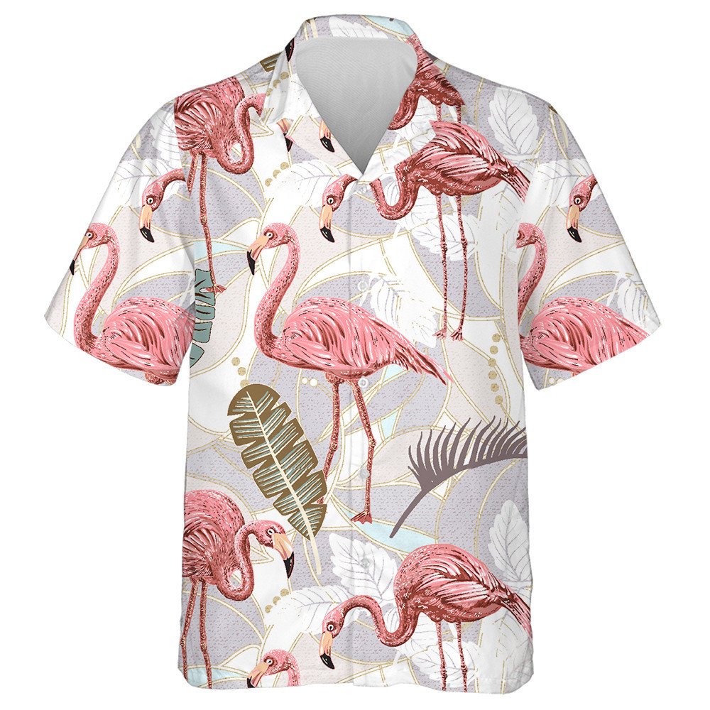 Cúlra Retro le Flamingo Bándearg agus Duilleoga Trópaiceacha Léine Haváís, Bronntanas Léine Haváís, Bronntanas Nollag