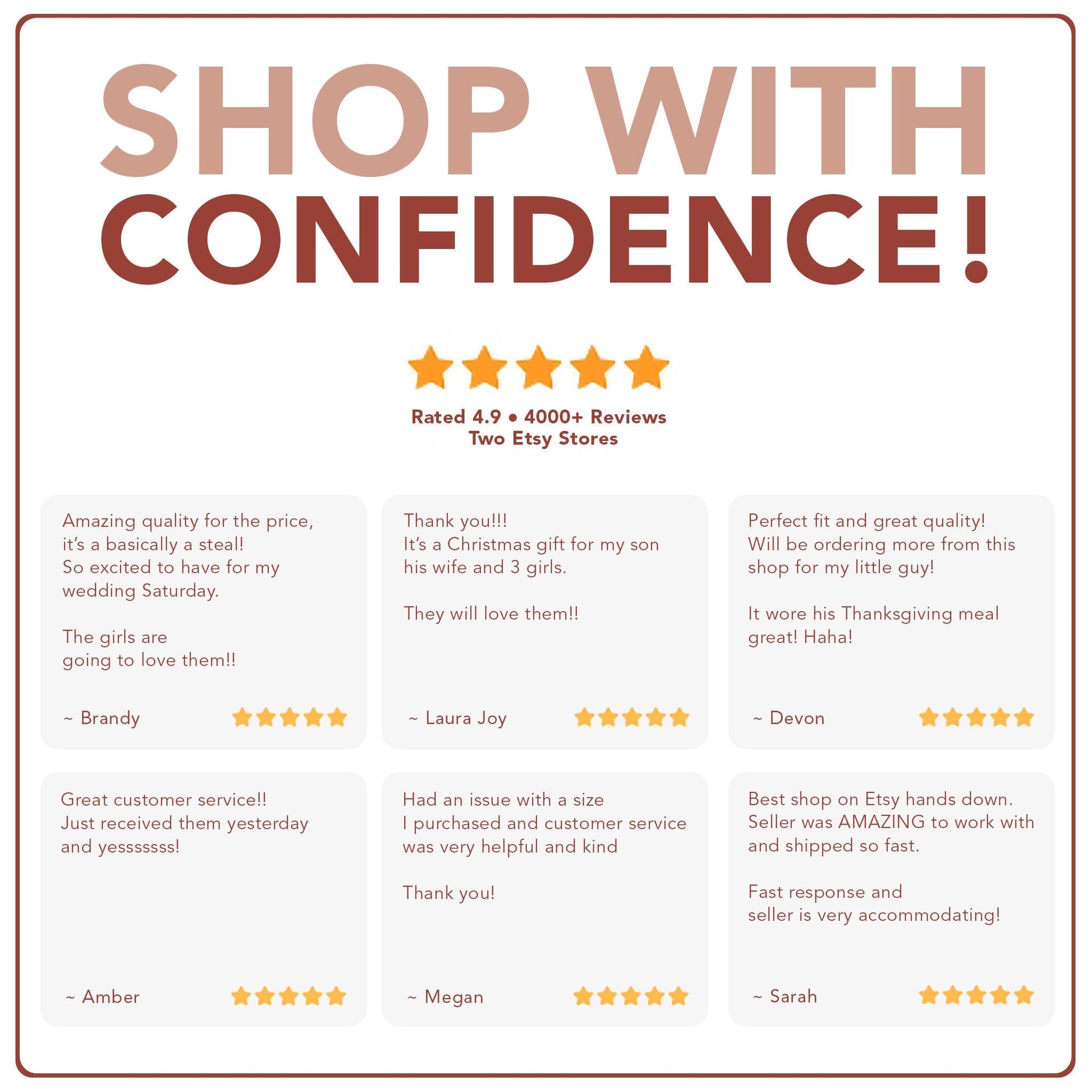 Measured laid flat; allow ±0.5" tolerance.