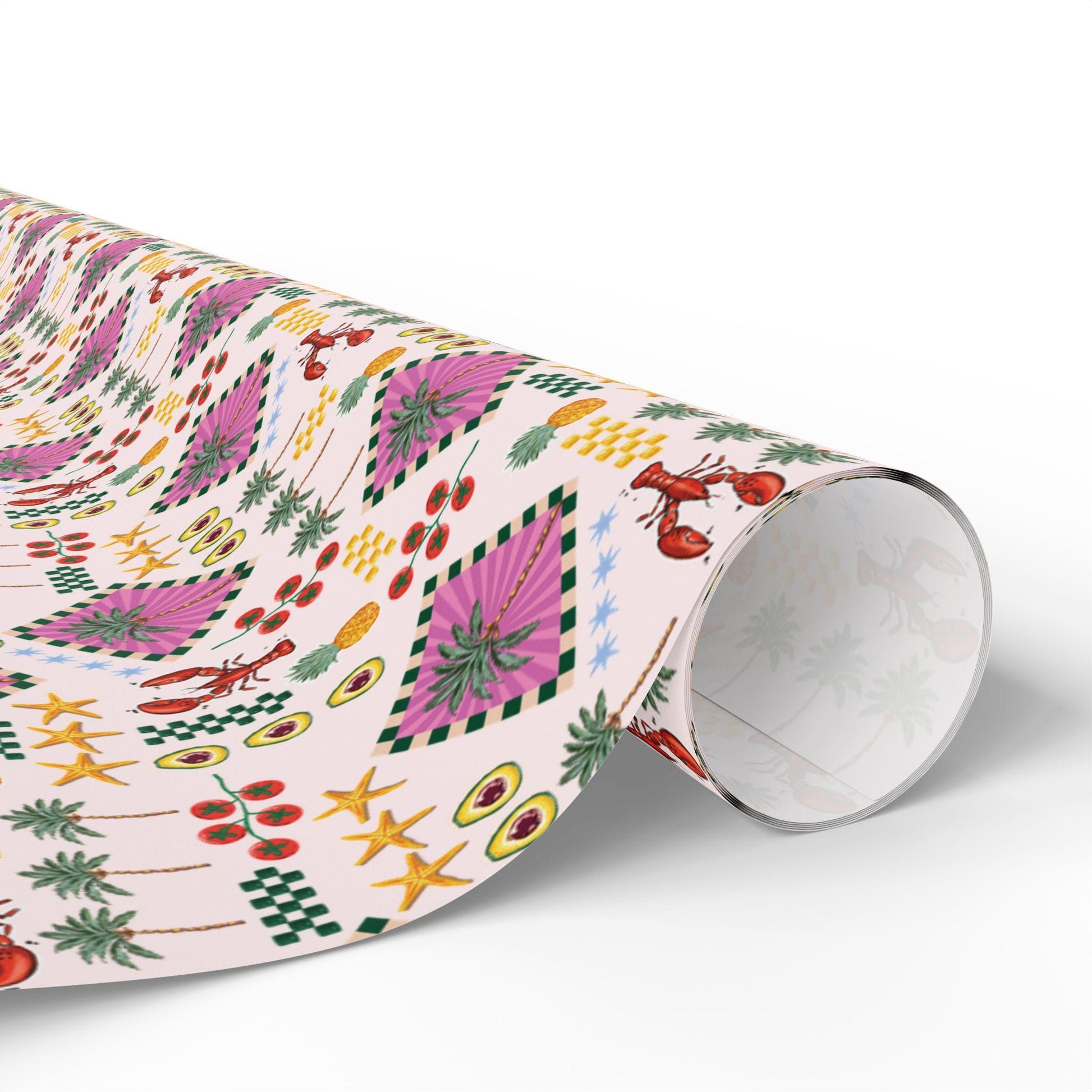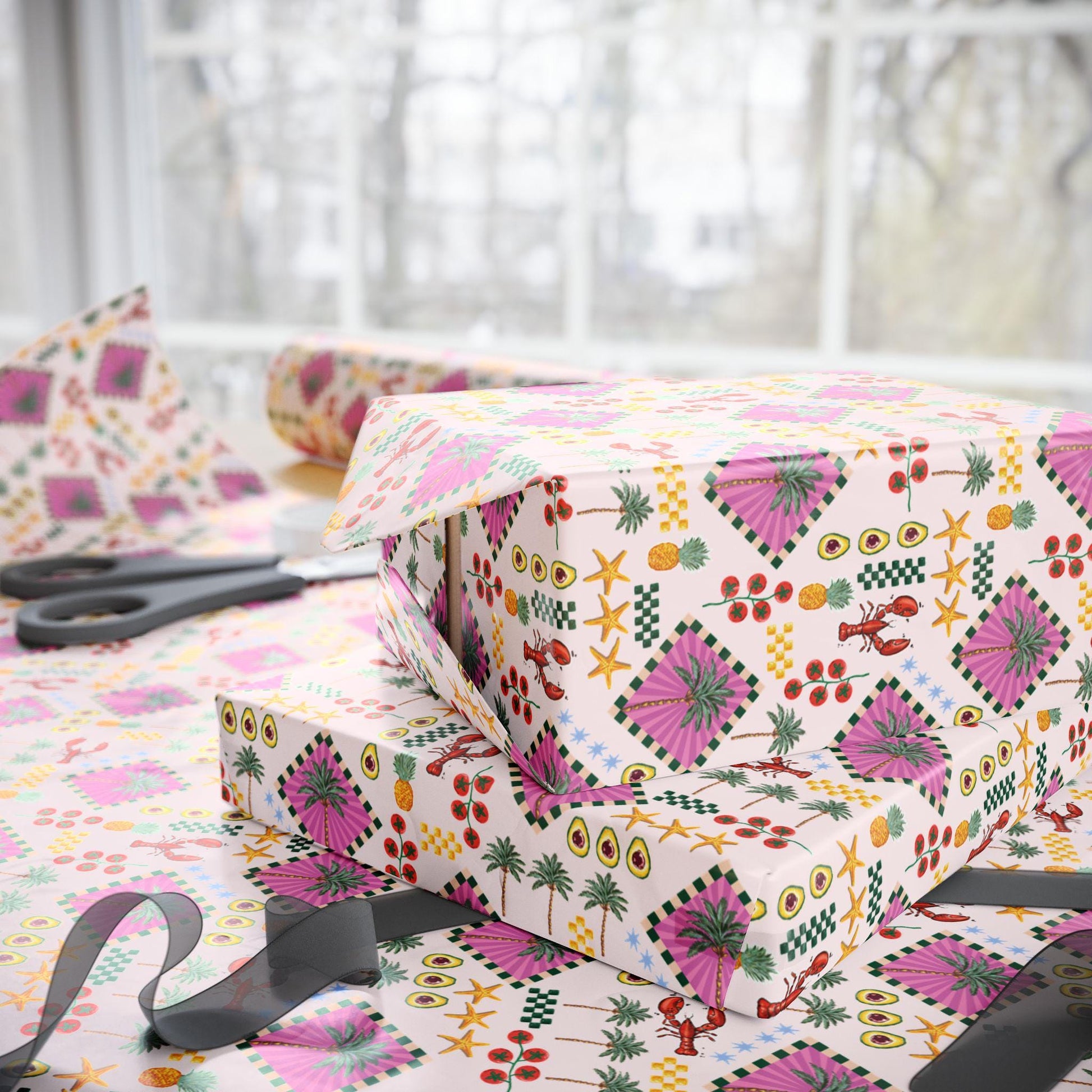 Retro Tropical Coastal Wrapping Paper Coconut girl Beachy Gift Wrap Pineapples Exotic Summer Hawaii Birthday bachelorette Beach wedding wrap