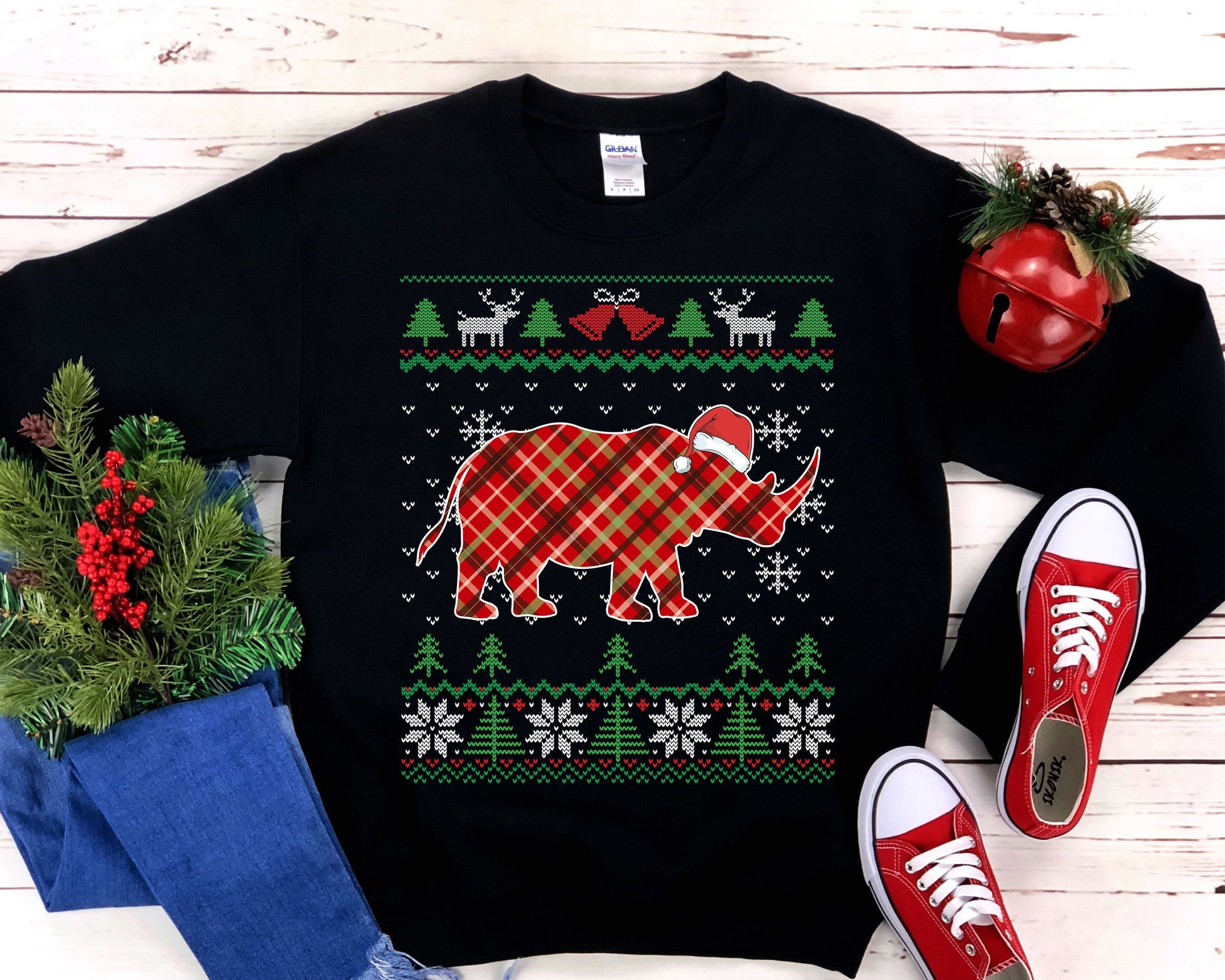 Rhino Christmas Shirt, Rhinoceros Animal Lover Gift, Ugly Christmas , Holiday Party Shirt, Xmas Unisex Crewneck Sweatshirt