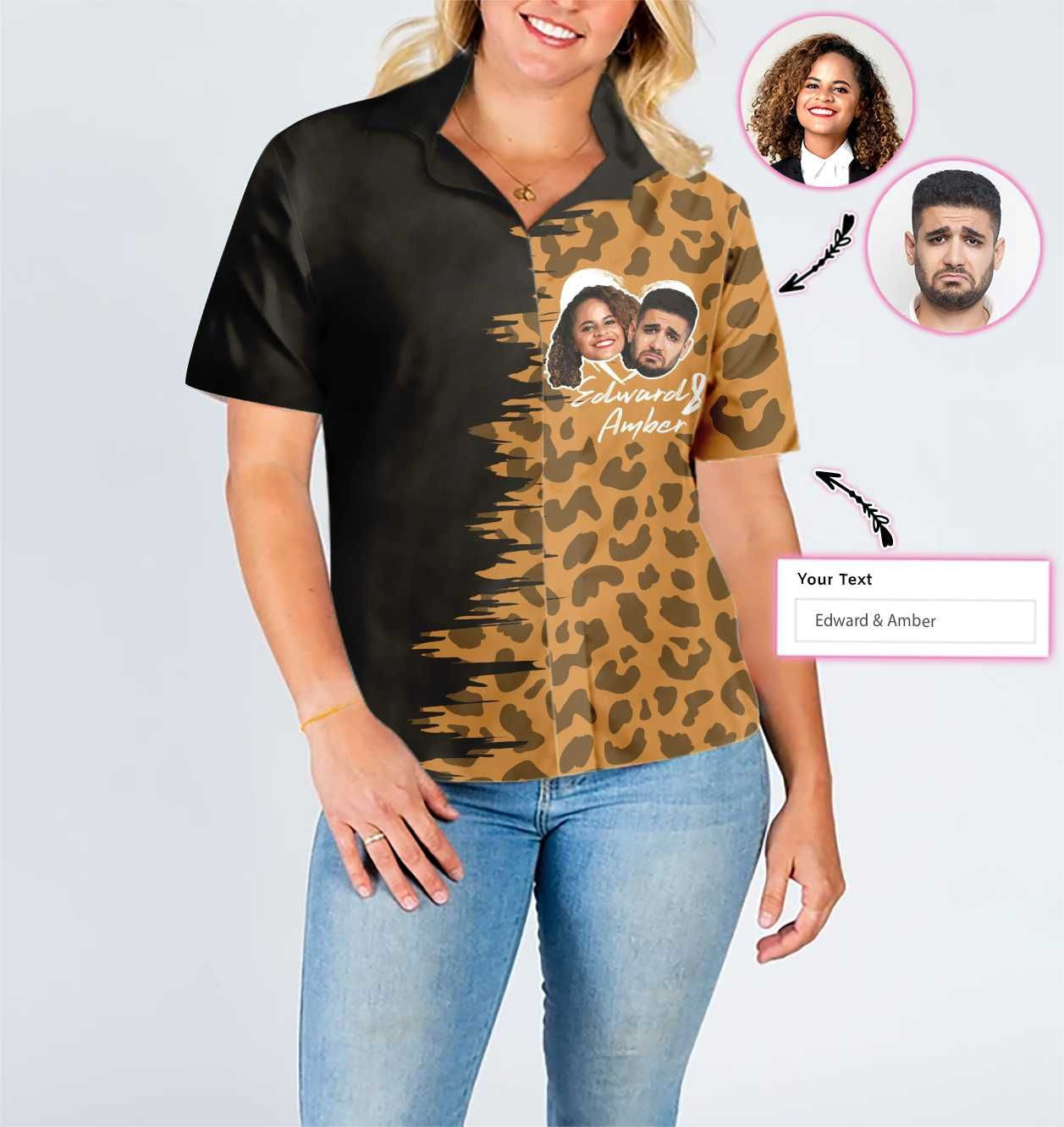 Lánúineacha Marcaíochta Dearadh Craiceann Liopard Grianghraf Saincheaptha Léine Haváís, Bronntanas Léine Haváís, Bronntanas Nollag