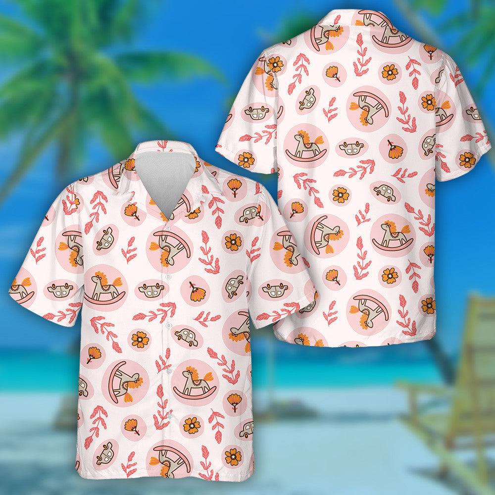 Capaill Rocking Agus Gluaisteáin Bréagán Ar an gCúlra Bándearg Léine Haváís, Bronntanas Léine Haváíais, Bronntanas Nollag