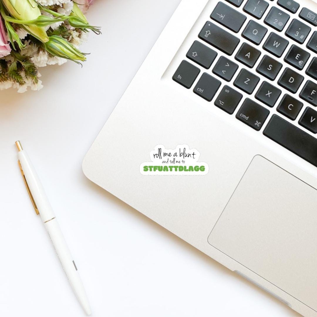 Roll Me a Blunt and tell me to STFUATTDLAGG spicy bookish stickers, kindle, laptop, romance reader, weed smoker, marijuana smokes, cannibis