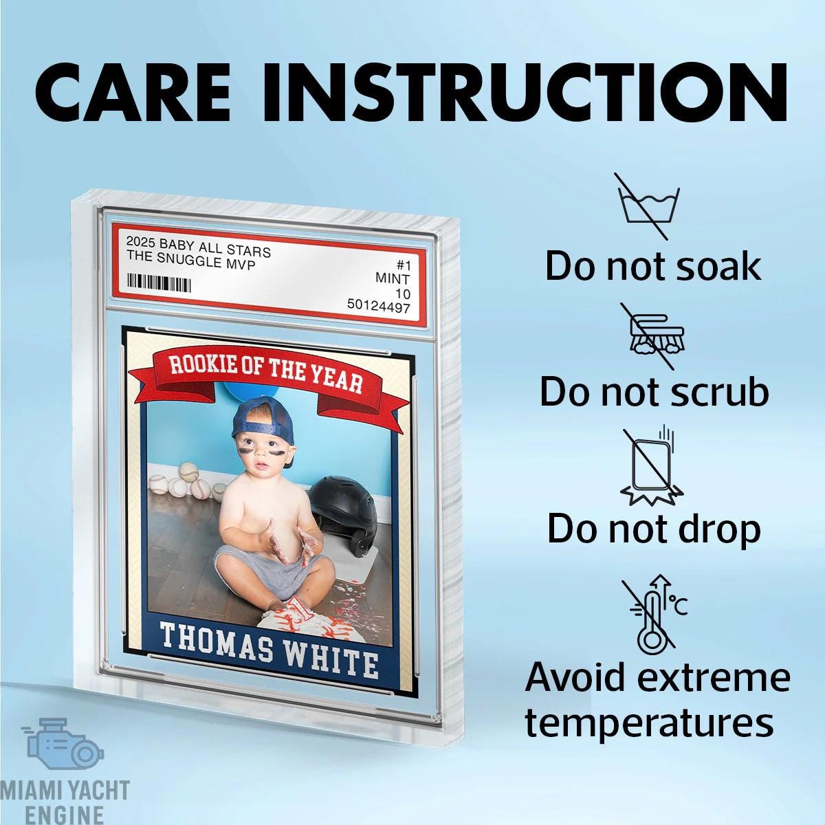 Rookie Baseball Kid All Star Plaque, Little Slugger 1st Birthday Trading Card Style Personalized Acrylic Block Keepsake Gift